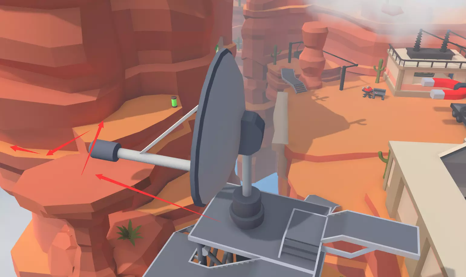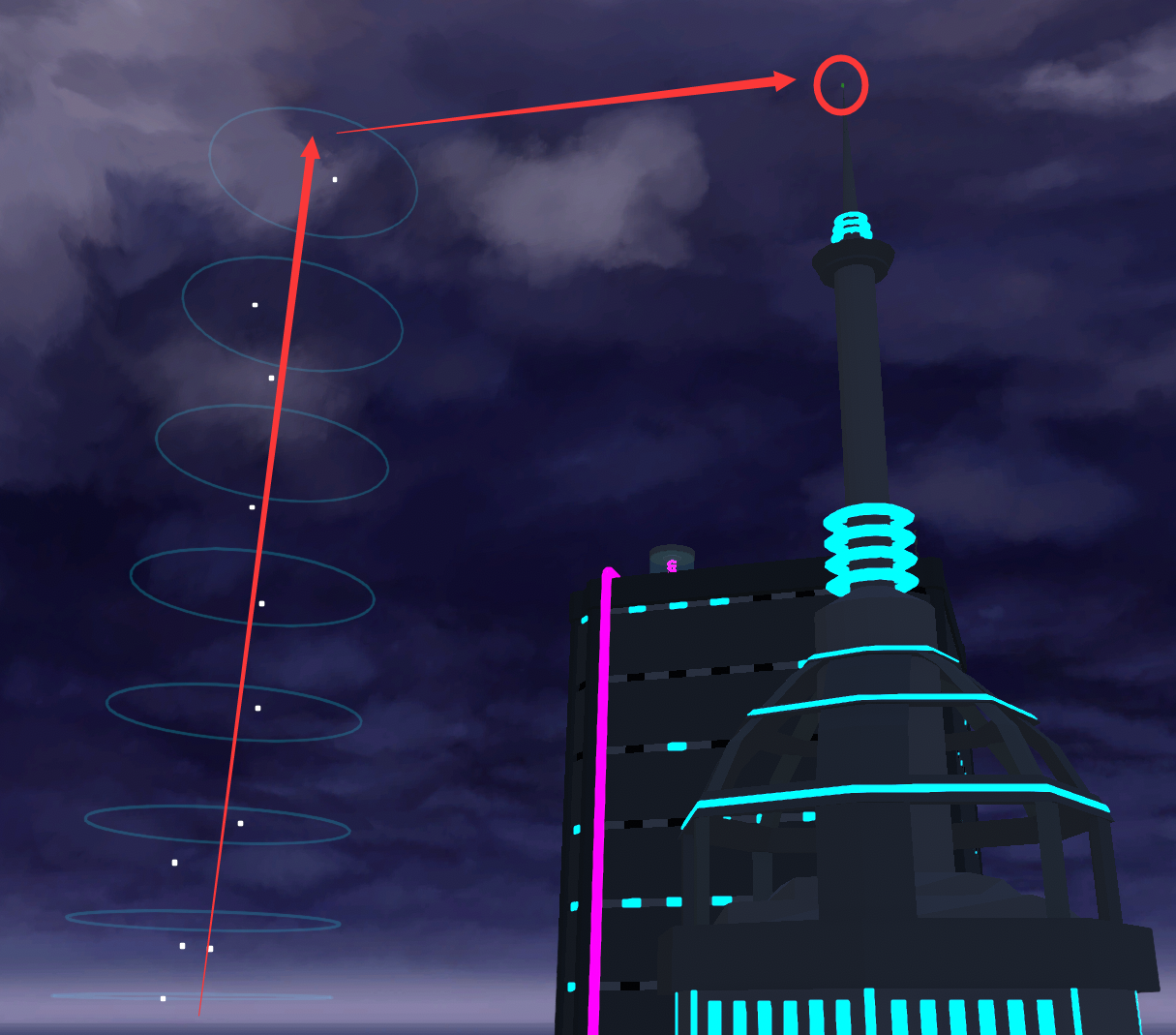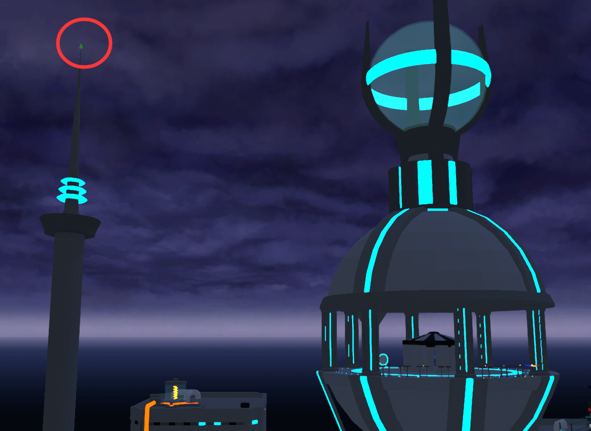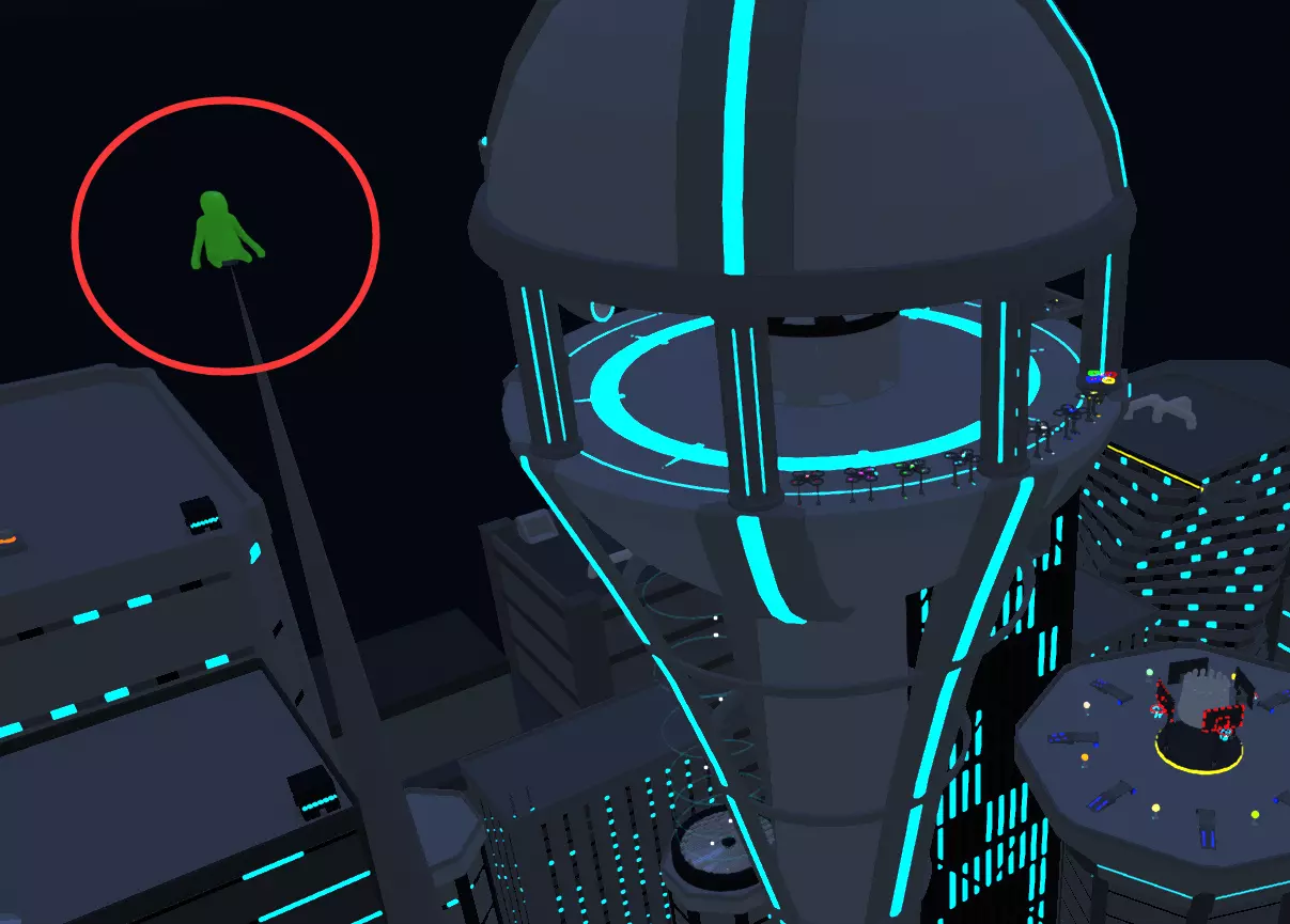 找到关卡中隐藏的三个娃娃,似乎需要将它们扔出去。第一个绿娃娃在这座尖塔的塔顶,需要用无人机飞上去。