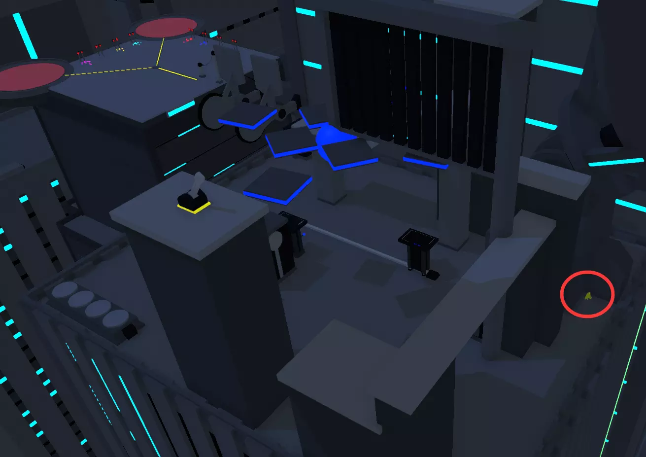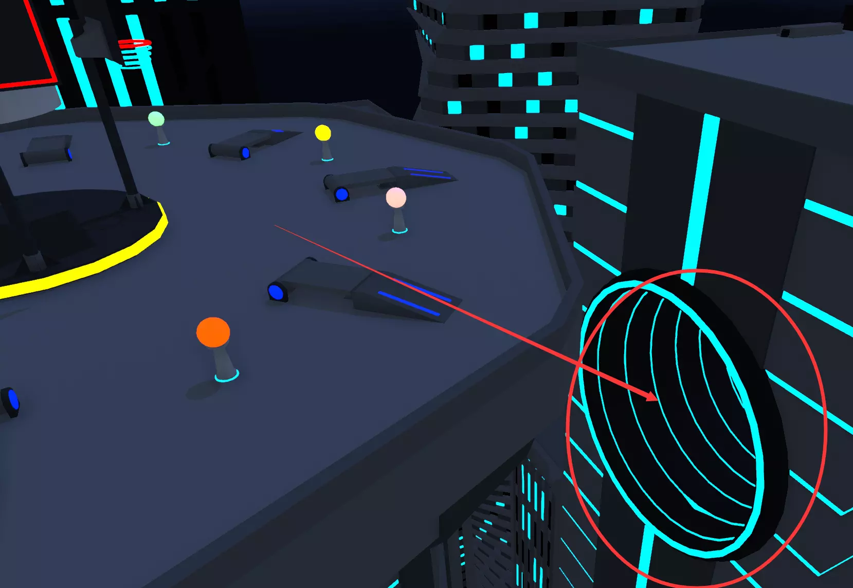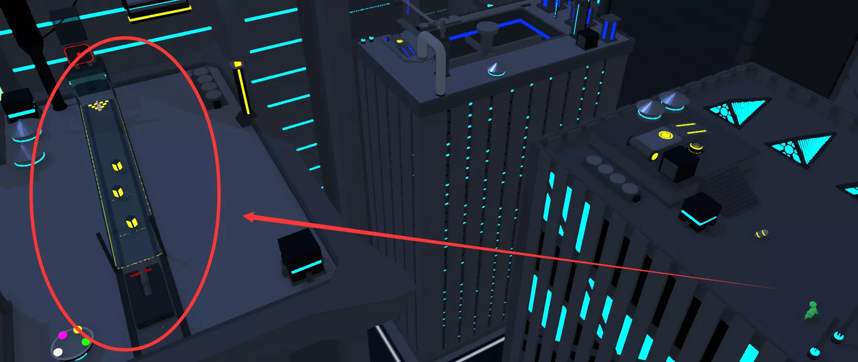 找到关卡中隐藏的三个娃娃,似乎需要将它们扔出去。第一个绿娃娃在这座尖塔的塔顶,需要用无人机飞上去。