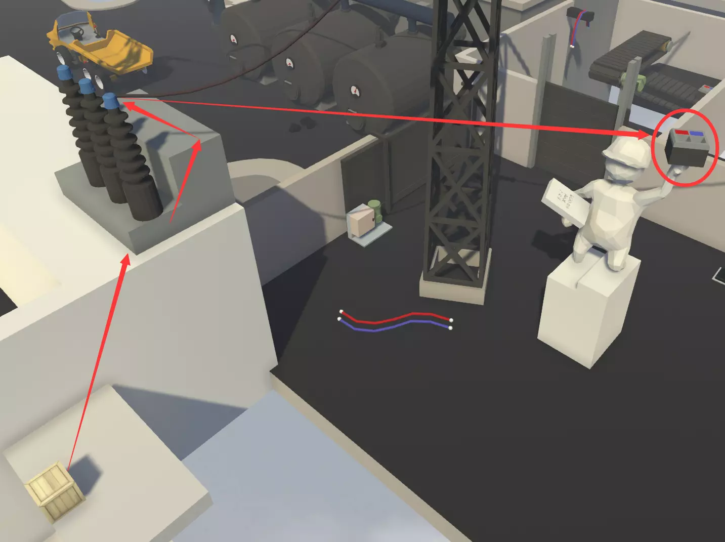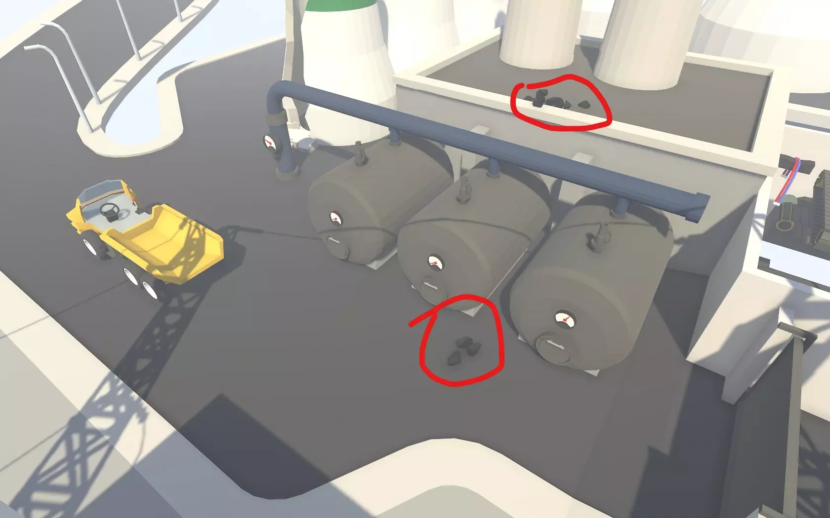 这里的贝壳可以弹射,最后弹射到最后一个鱼雷再荡到对面即可。部分关卡的“捷径”:发电厂其实你不需要开车去副岛拿煤,如图,主岛就有很多(但如果你想完成成就【快递小哥】和【车迷】,你可以去)。