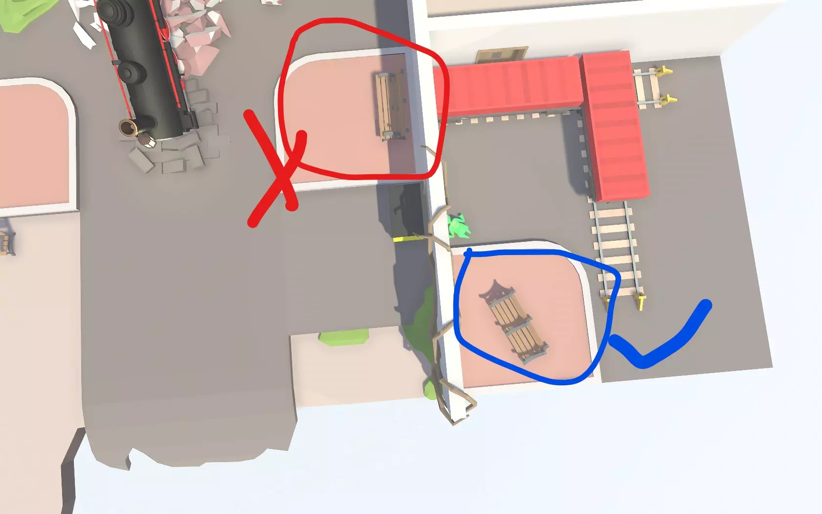 完美主义者 “火车”关卡中,将翻转的躺椅正过来,再把它靠在墙上(难点就在于那个躺椅有点沉)