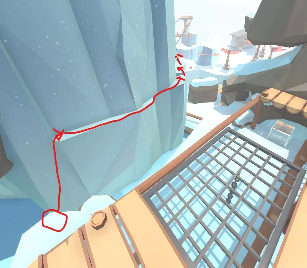 在圣诞大厅中,站到大雪人的帽子上。会爬墙的玩家可以直接爬上去,不会爬墙的玩家可以使用投石机(作者暂未发现其他方法)。 【雪崩】