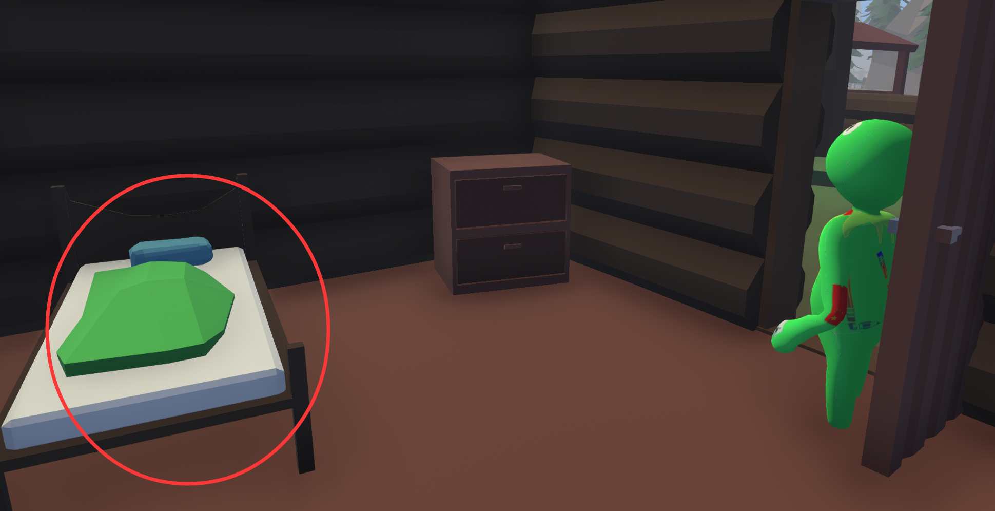 将出生点旁边小房子里的床扔进水里