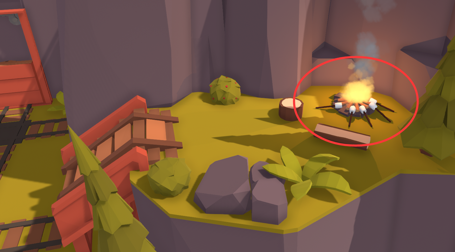 在篝火上烤棉花糖,篝火位置如下: