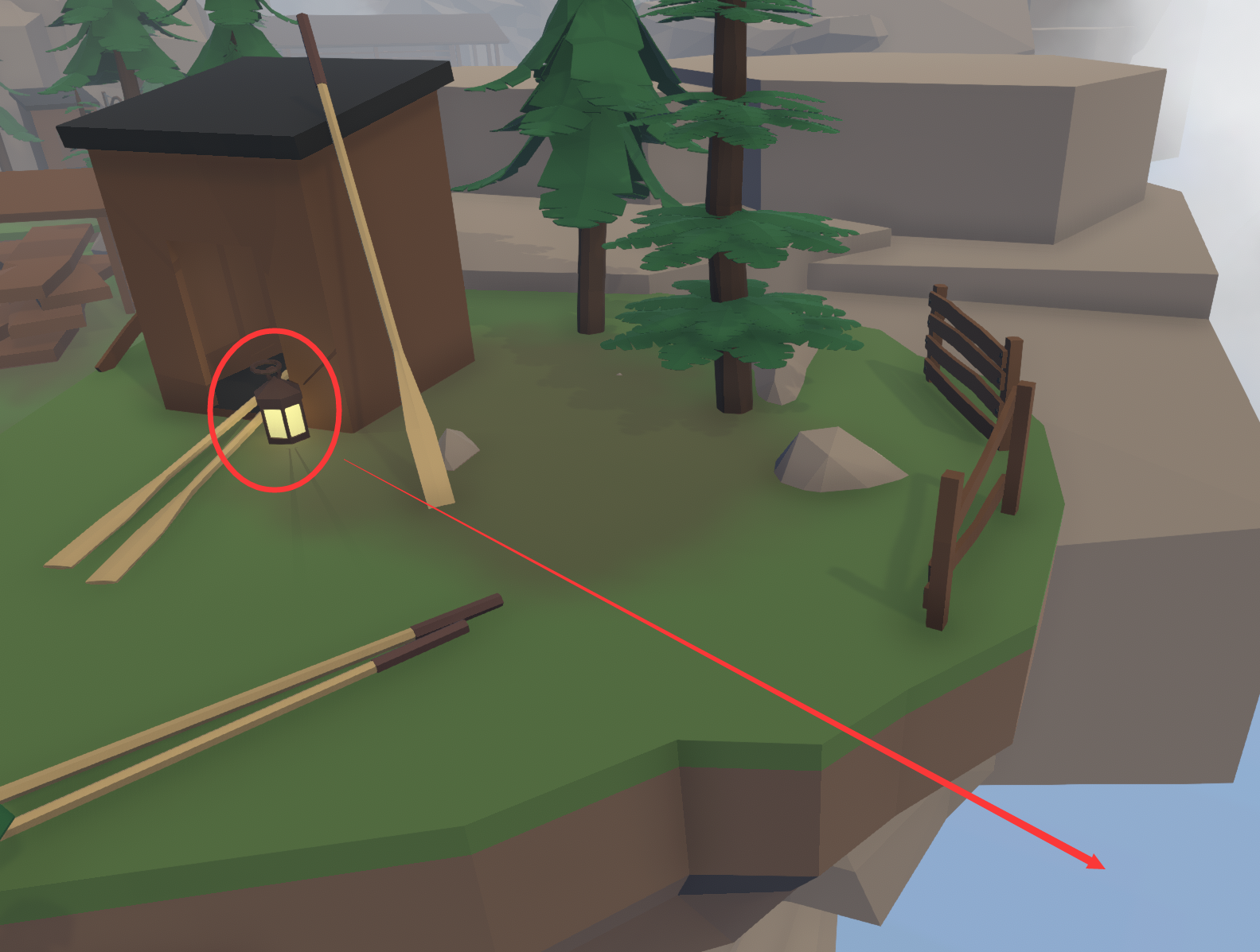 把这些灯丢出地图 第一个在出生点附近的湖边