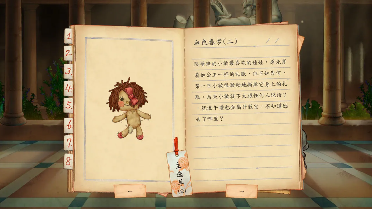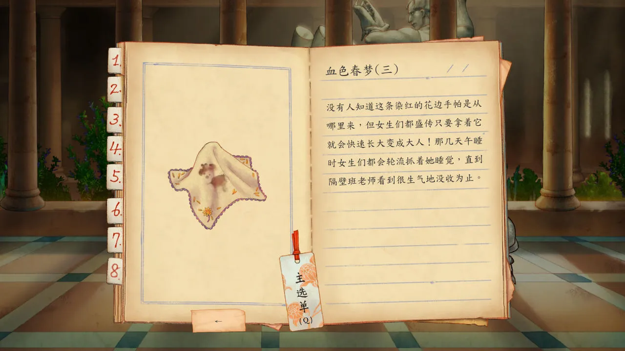 第一章,《静悄悄》,从两个女老师之间的玩偶隧道往下走,调查隐藏空间里的手帕