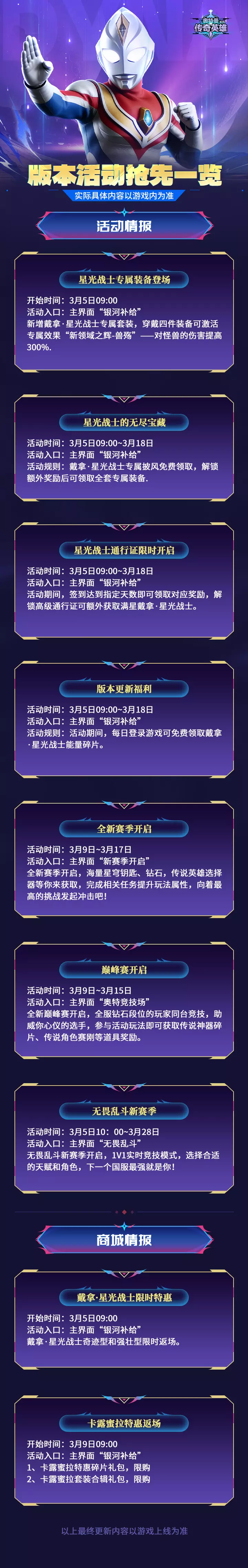 《奥特曼传奇英雄》版本活动一览