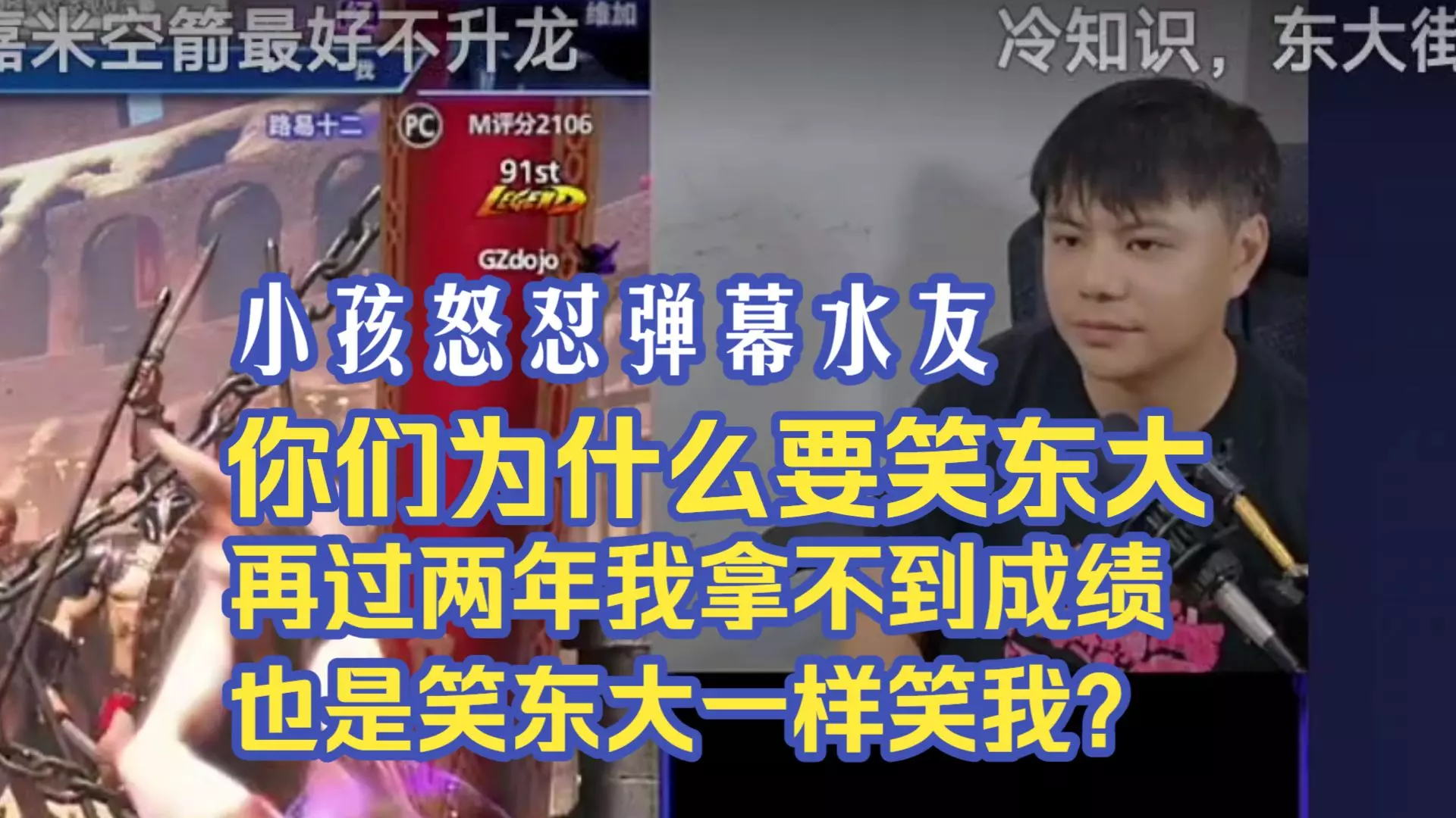 街霸6 小孩直播怒怼弹幕笑东大的言论,过两年我没成绩也是笑东大一样笑我吗?