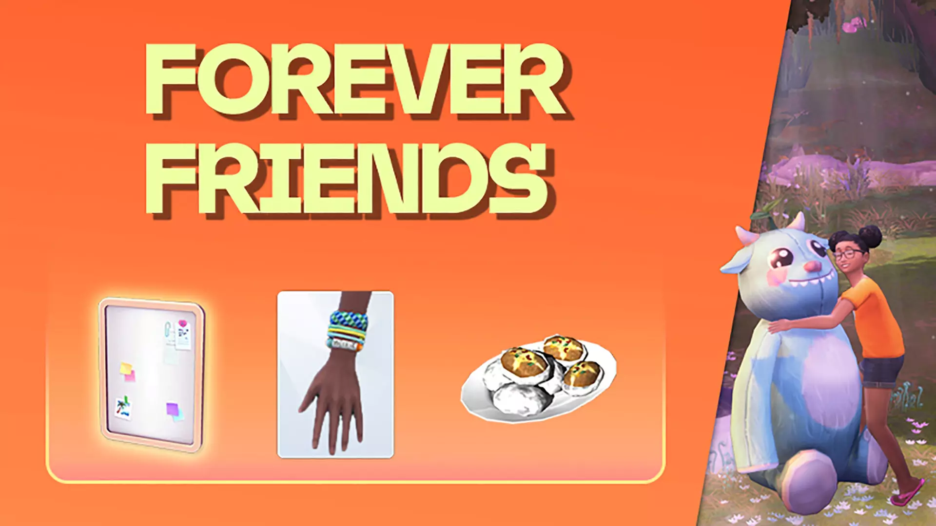 《模拟人生4》永恒好友活动现已开启。认识友好熊皮克(一个全新的毛绒伙伴!),开启一场充满想象力的冒险吧!你们可以一起赢得用来存放纪念品的磁性留言板、美味的新食谱、友谊手链,以及一个恐龙形状的新磁铁。