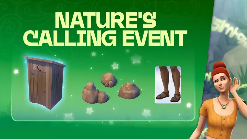 游玩《模拟人生4》“自然的呼唤”活动第四周!在探索大自然的一个秘密时,你可以获得木制王座厕所、海湾石装饰岩石、徒步凉鞋以及《触摸草地周刊》第四期。