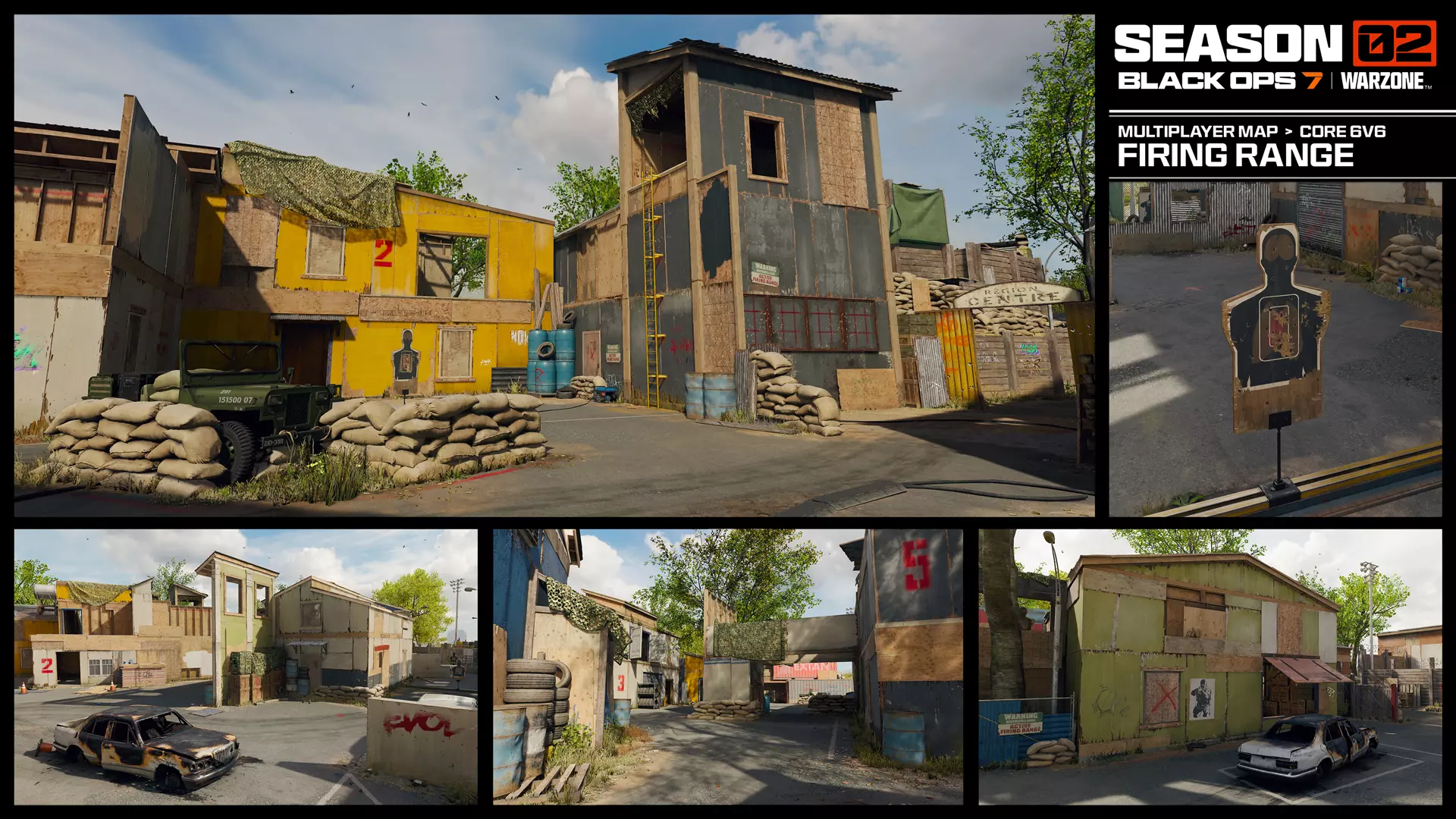 传奇滑板公园最早出现于《使命召唤:黑色行动2》,将在季中更新中回归。你可以在公园和专业商店内战斗,也可以前往户外广阔的滑板碗和半管区域,这里开阔的视野和垂直移动创造了源源不断的机会。利用坡道和高度优势智取对手,连续完成酷炫的淘汰,并上演精彩操作,尤其是这张地图在你通常需要攀爬的区域提供了多种 wall jump(墙壁跳跃)机会。 靶场(季中更新) 回归自《使命召唤:黑色行动6》,6v6,小型地图