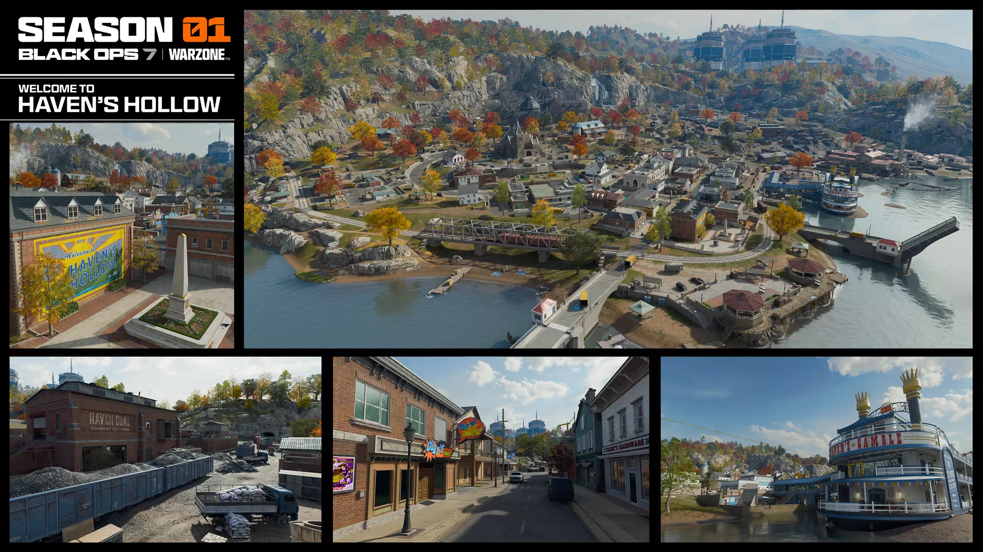 《使命召唤:黑色行动6》僵尸模式自由瀑布地图的粉丝们会认出这条密集建筑群主干道上的汽车旅馆、漫画店、保龄球馆以及其他知名地点。 河船