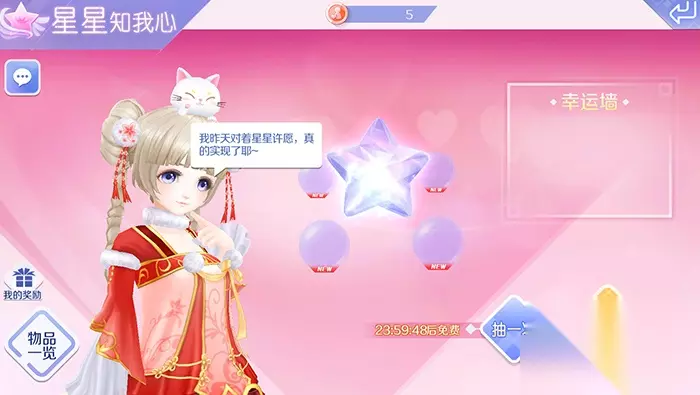 玩家进入主界面稍微往右拉,就可以看到港口中的幸运游轮,上面红色圆点表示可以进行抽取道具。点击对应区域后,即可进入参与魔力水晶球、超时空极光、星星知我心,每个活动的冷却时间都是24小时。