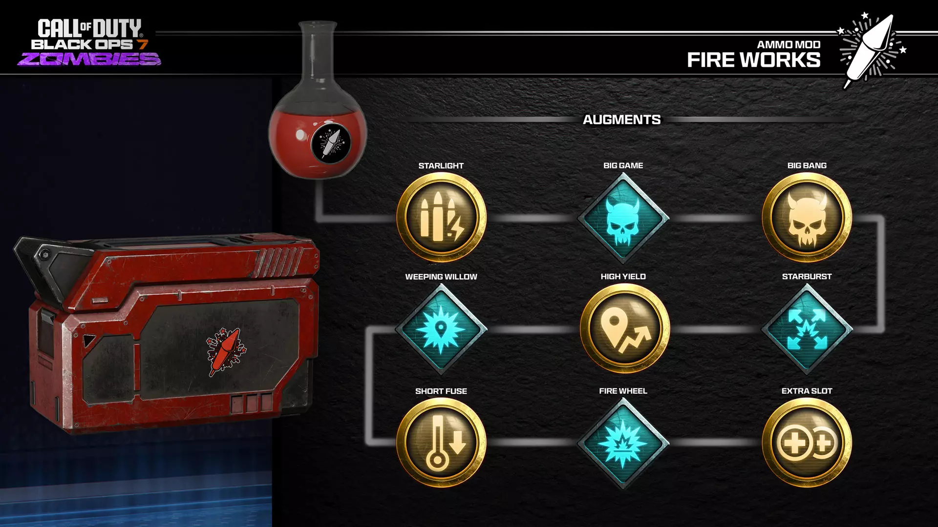烟花(弹药模组) 解锁条件:三级枪炮军士(18级) 普通敌人和特殊敌人被击中后,子弹有概率释放烟花攻击敌人。 13级:进度解锁(上士一级)