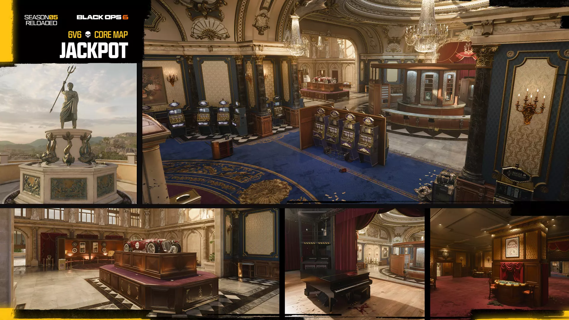 部署到卢塔齐赌场,让自己占据有利位置,有机会赢得丰厚奖励。Beenox借鉴了《使命召唤:黑色行动4》中“赌场”地图的元素,对该地图进行了大规模重制,新增了布局区域并采用了新的艺术风格,部分灵感来源于《使命召唤:黑色行动6》战役中的“豪赌者”任务。