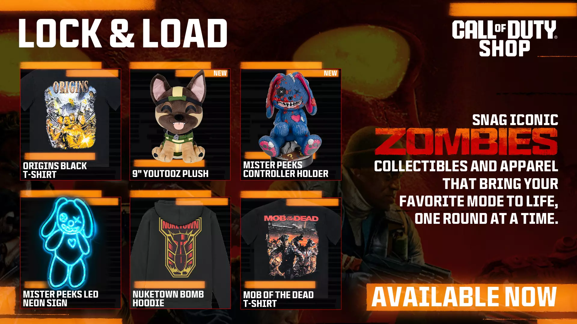 无论你是在打造自己的游戏室,还是在寻找具有历史意义的《使命召唤》收藏品,使命召唤商店的最新产品都能满足你的需求。从毛绒玩偶到诡异的桌面装备,以下是一些亮点: · 莱利9英寸Youtooz毛绒玩偶(含“快乐小狗”武器挂饰):《使命召唤》历史上最忠诚的伙伴现已加入抱抱任务——它配备了战术背心,表情警觉,还附赠武器挂饰。 · 皮克斯先生手柄及手机支架:刚从贾纳斯大厦肆虐归来的皮克斯先生,将负责固定你的装备,并(用它那只完好的眼睛)守护你的游戏 setup。 · 神秘箱3D台灯:这款USB-C充电台灯支持触摸控制,能发出诡异的黄色光芒。用最具标志性的僵尸模式战利品掉落发光纪念品点亮你的空间。立即升级《使命召唤:黑色行动6》!