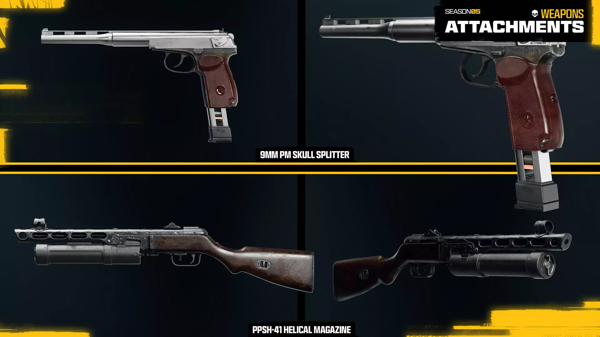 9毫米PM碎颅者(两个配件,初始状态) 9毫米PM手枪,战斗通行证第7页奖励 为你喜爱的手枪带来射手步枪般的威力与精准度——9毫米PM碎颅者枪管。该枪管大幅提升伤害,尤其是对头部的伤害,但会降低射速。搭配一个扩展弹匣,可为该武器提供额外弹药,但会牺牲部分操控性。