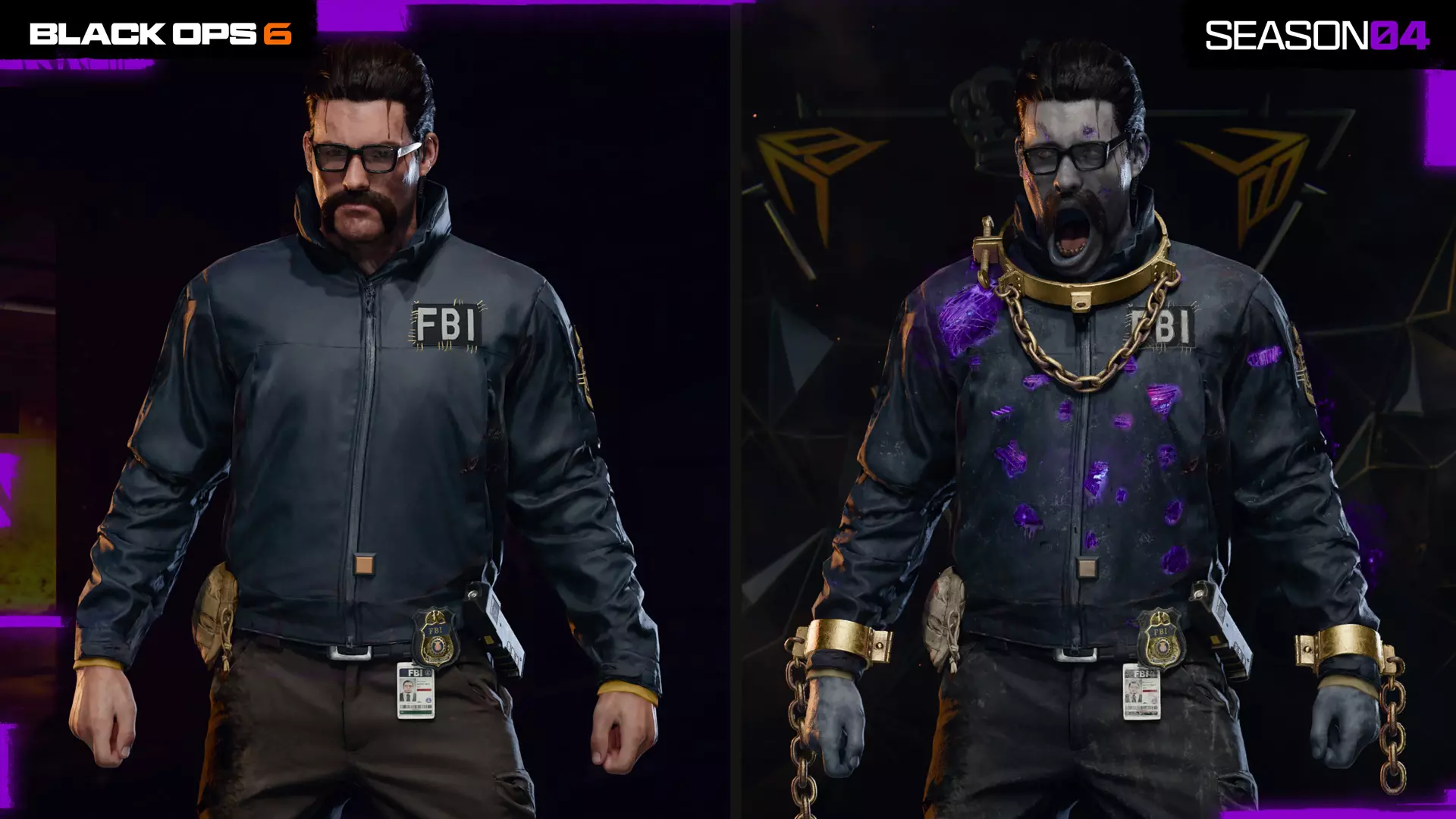 F或许代表“伪装”,但佩恩这身外勤特工的装扮确实无可挑剔,希望没人会仔细留意他的针脚。然而在黑色战域(BlackCell)变体皮肤中,他的计划似乎适得其反——这位干员的下颌线条松弛,手臂和脖子上还戴着金链。 灰色品质:“悬赏”皮肤 干员皮肤,战斗通行证,第6页
