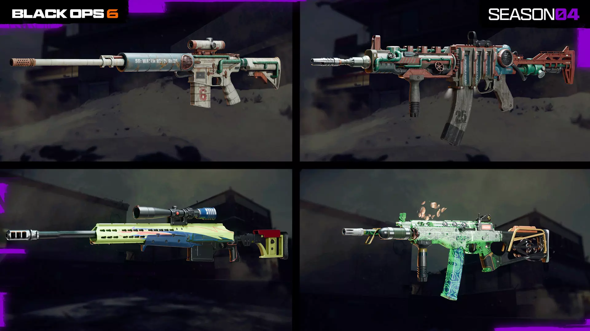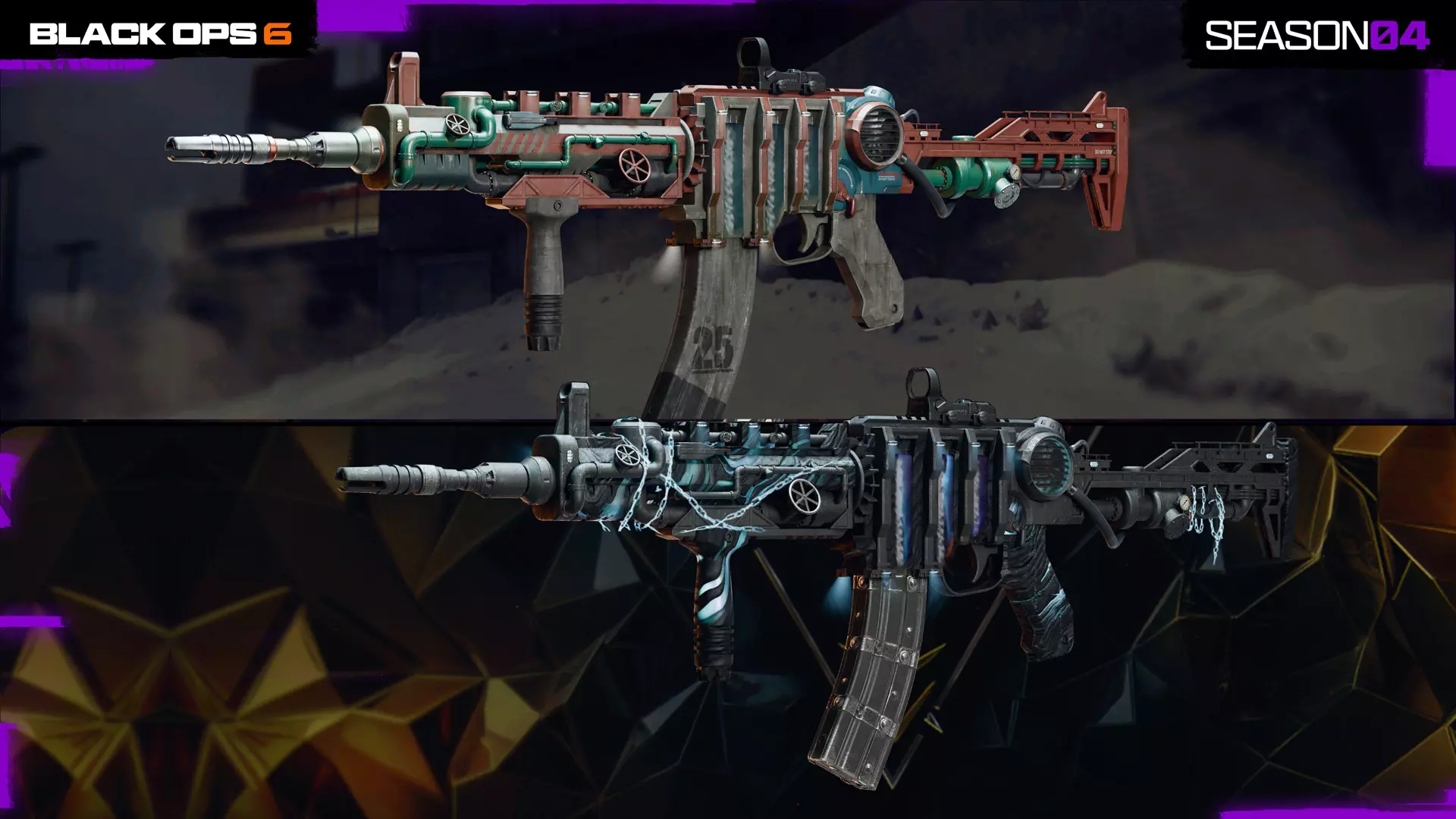马歇尔穿上全套潜水装备,包括潜水头盔、氧气瓶、相机和监测工具,潜入深渊以协助手头的水下任务。 【第四赛季:战斗通行证基础武器】 解锁第四赛季战斗通行证中的两把全新基础武器。所有玩家可在新赛季开始时,通过推进所列的战斗通行证页面免费解锁这些武器。 LC10:冲锋枪,战斗通行证第3页,第14页战斗通行证蓝图