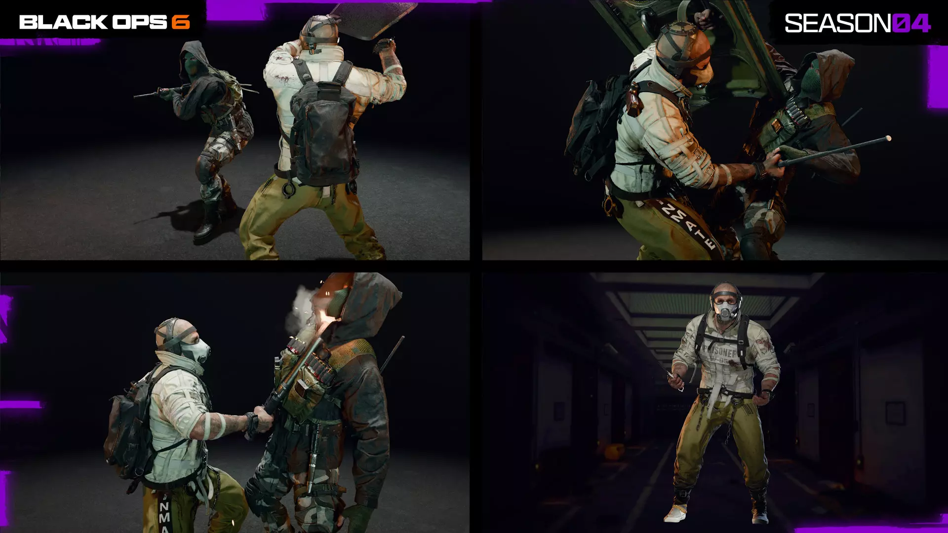 《使命召唤:黑色行动6》与《使命召唤:战区》第04赛季更新内容 拉塞尔·阿德勒急于破解万神殿代号,被迫与宿敌维克霍尔“ stitch”库兹明重逢。在导致 stitch 越狱的史诗级越狱事件之后,是时候最终揭露这些叛徒的身份了。幸运的是,援助即将到来。第04赛季将于5月29日上线,以下是黑色细胞、战斗通行证和商店内容的预览。 第04赛季战斗通行证包含100+奖励,包括: 1. 新的免费基础武器 2. 新的干员皮肤 3. 武器蓝图 4. 名片 5. 终结技 6. 以及更多内容获取免费奖励,包括全新外观内容和基础武器;或购买高级战斗通行证,在解锁通行证页面的过程中获得10%战斗通行证经验加成以及最多1100点使命召唤点数。为获得最佳赛季体验,可购买黑色战域组合包,内含专属干员皮肤、武器蓝图及其他奖励。黑色战域组合包第四赛季:预兆干员(赤红一号),黑色战域即时奖励页面,高价值目标。