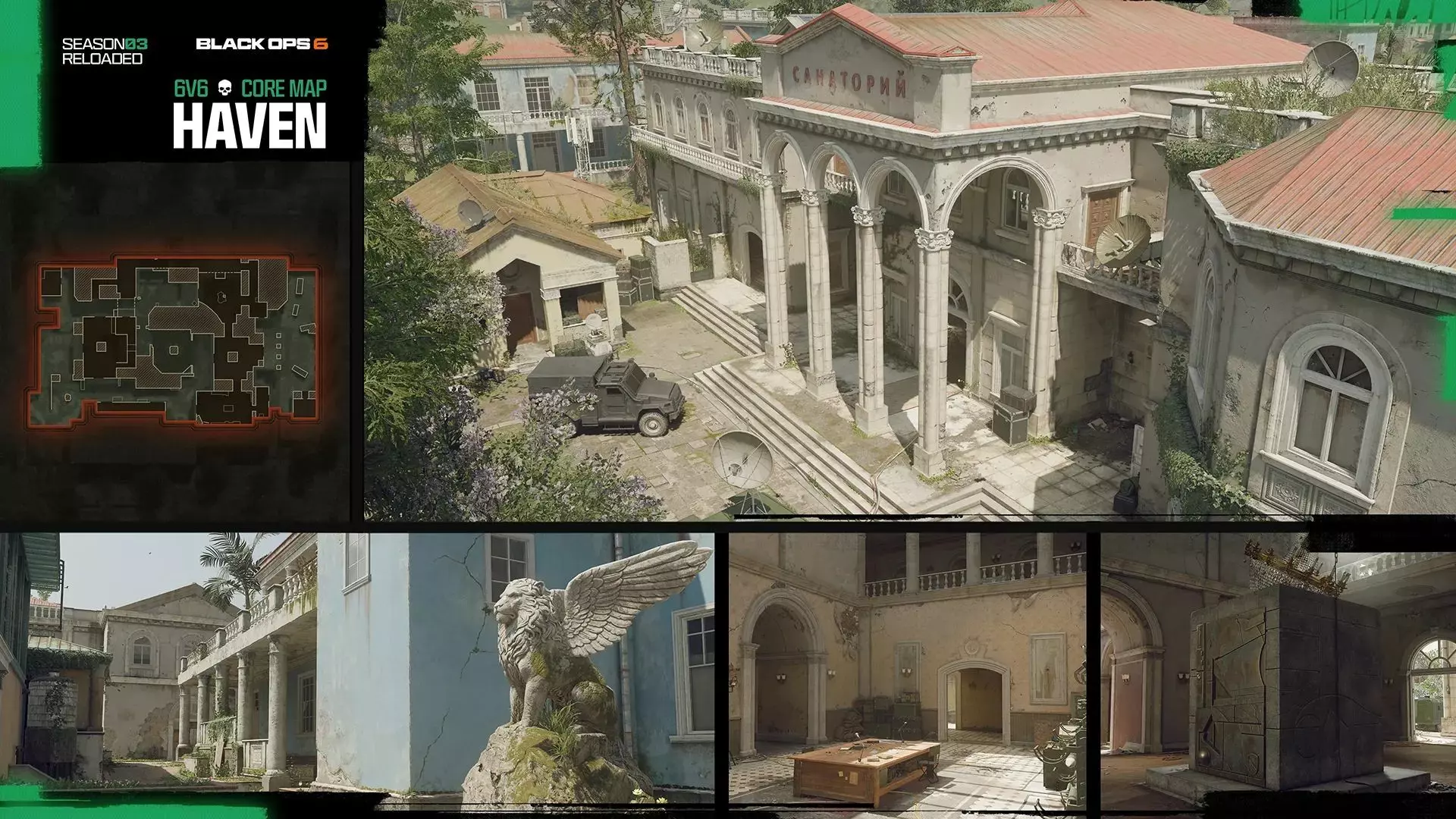 多人游戏内容摘要 两张新地图:前往中型地图“避风港”,这里曾是一座庄园,如今变成了克格勃的安全屋,你将在广阔的场地和奢华的室内寻找目标。在新地图“信号打击”中,重新造访臭名昭著的数字电台,特遣队员将在水面上下展开激战。 加入行动限时模式:在全新的多模式限时模式中测试你的耐力,该模式包含特殊间歇,为战场上的所有特遣队员引入游戏玩法修正器。 新特长:通过全新的“复仇”特长找到淘汰你的敌人,将他们标记出来进行淘汰。 多人游戏地图 避风港 全新核心地图,6v6,中型规模
