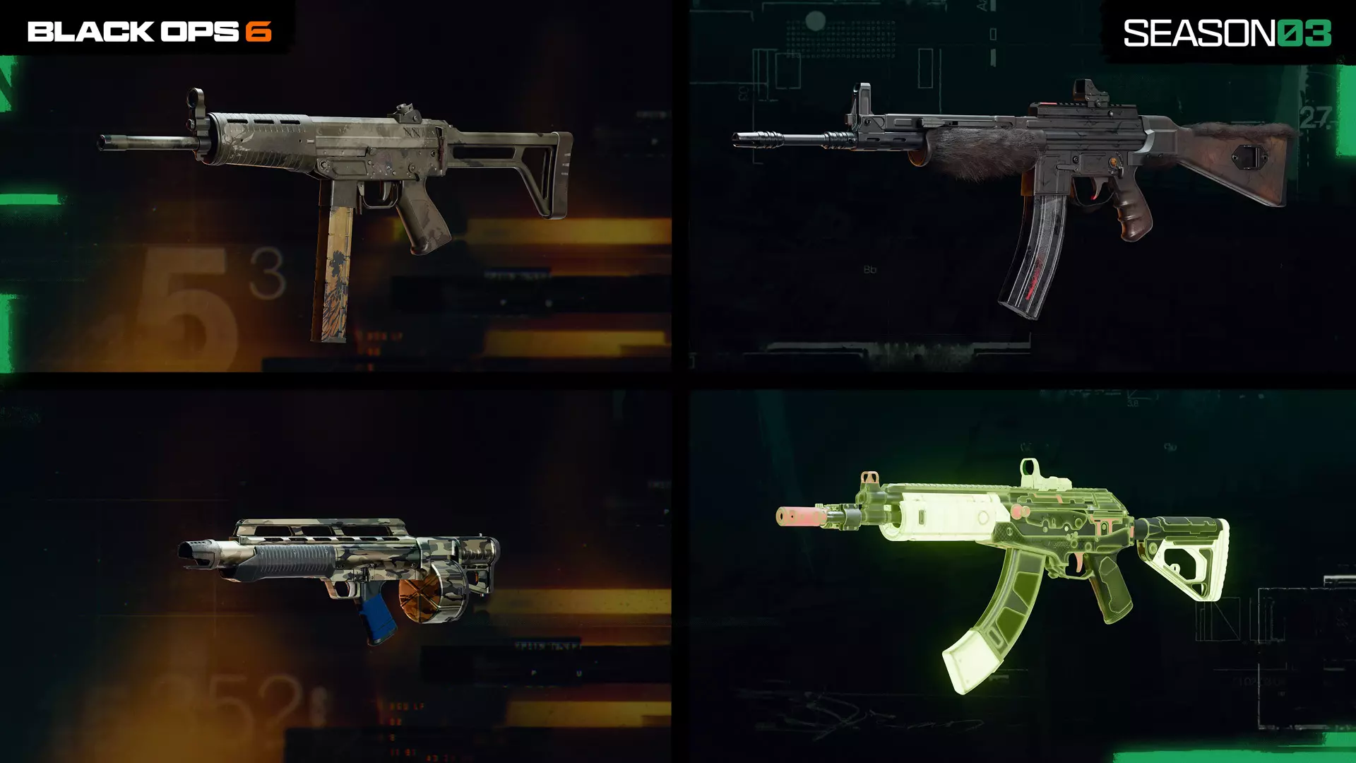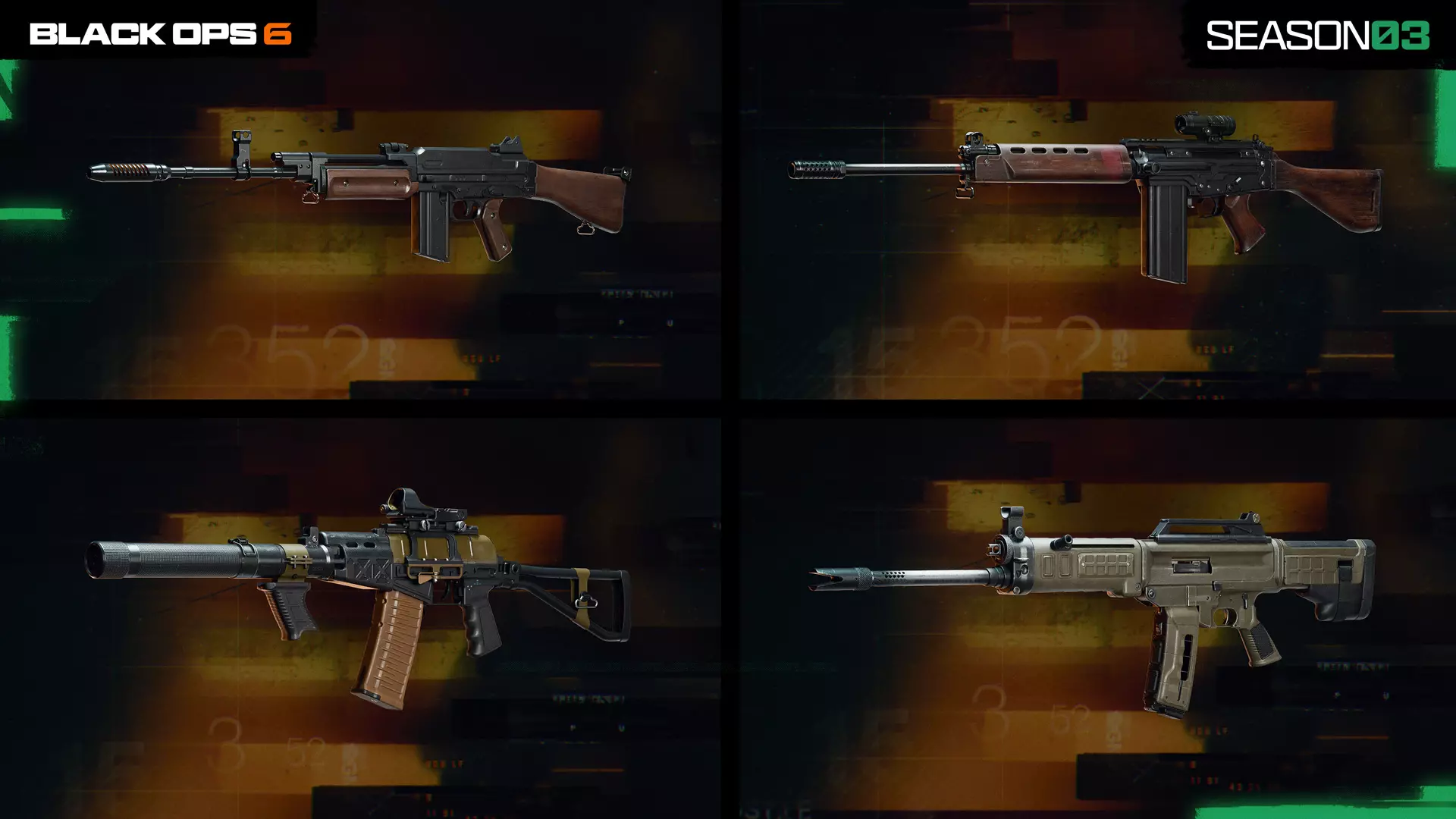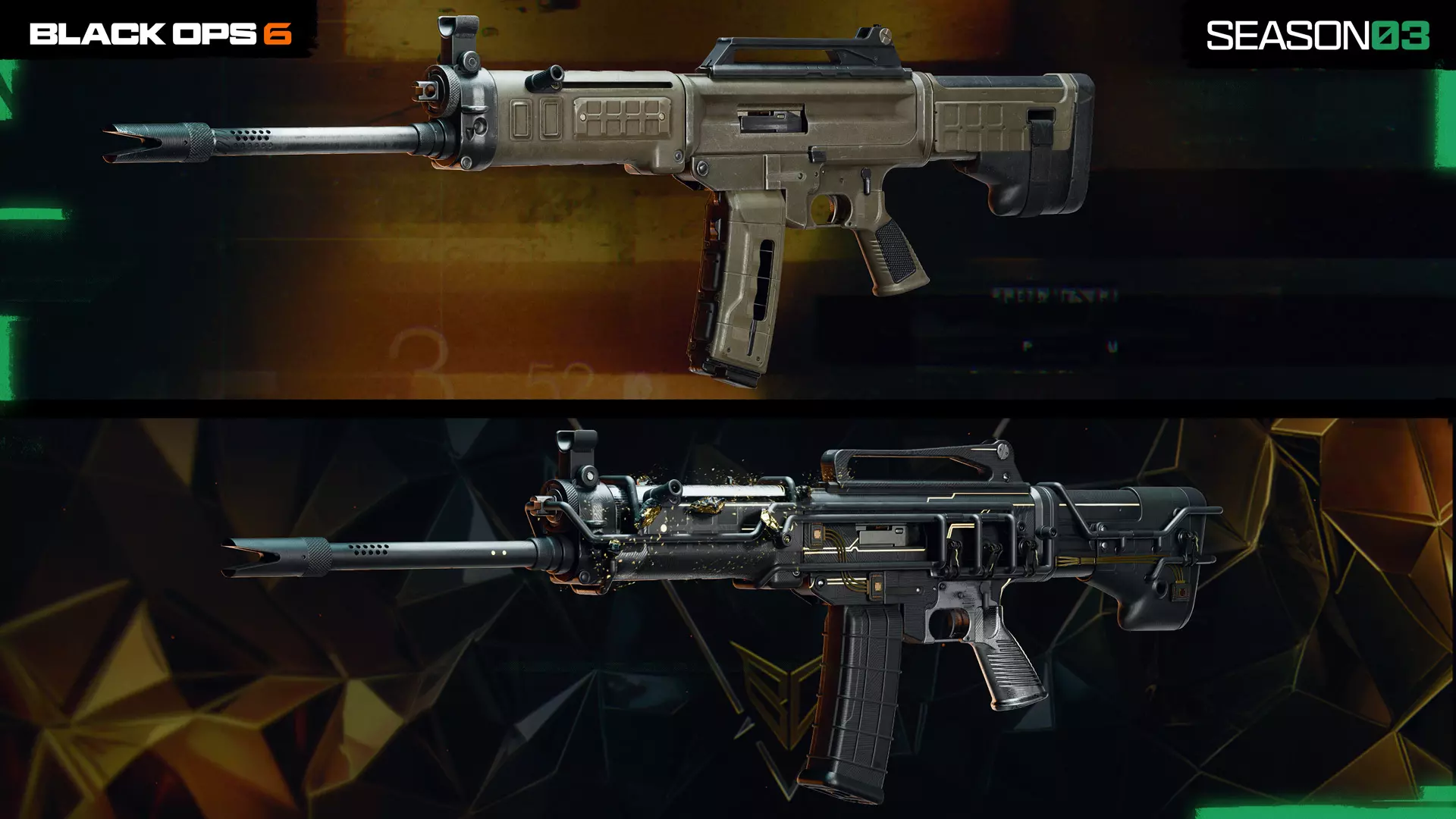 【整体式消音器】提供卓越的声音抑制效果和更远的射程。中等重量增加会影响敏捷性。这是在像【Verdansk】这样的大型地图上延长武器伤害射程,同时保留消音器隐蔽性的理想配件。 可解锁武器蓝图 【第三赛季】战斗通行证和【BlackCell】包含超过20个可获取的武器蓝图,其中包括以下主题武器: