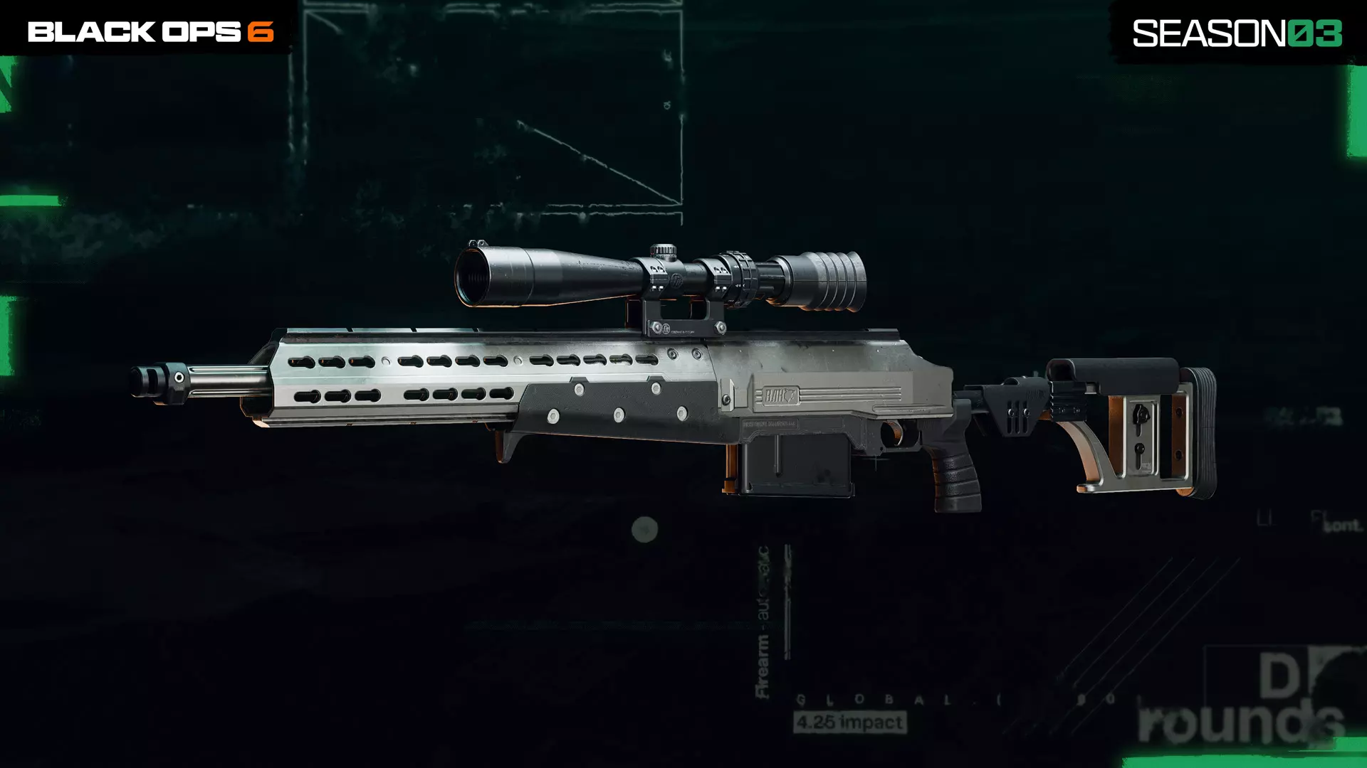 托罗身着重型装甲,肩上斜挎着子弹带。在黑Cell变体中,他换上了更为利落的造型,黑色搭配金色点缀,面罩和左臂上留有灼烧的痕迹。 第三赛季:战斗通行证基础武器 解锁第三赛季战斗通行证中的两把全新基础武器,每一把都是 Verdansk 时代的经典回归之作,可供战斗使用。所有玩家都可以通过推进所列的战斗通行证页面免费解锁这些武器。 HDR 狙击步枪 战斗通行证,高价值目标,第3页