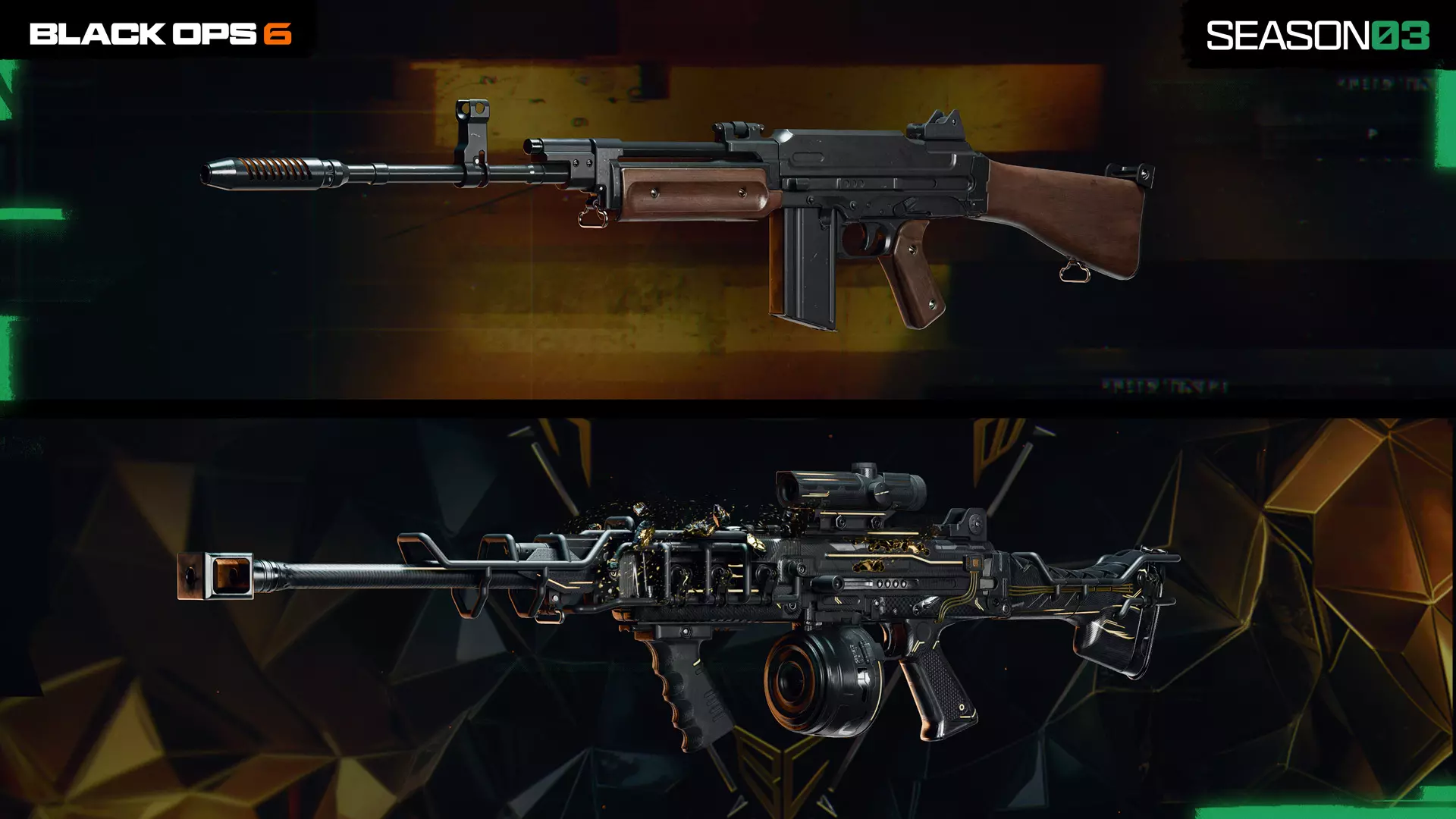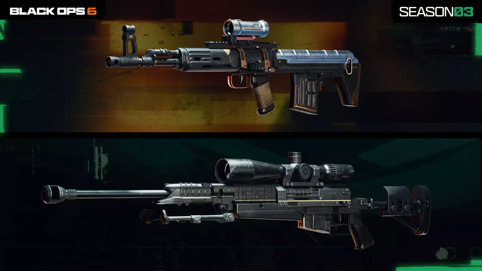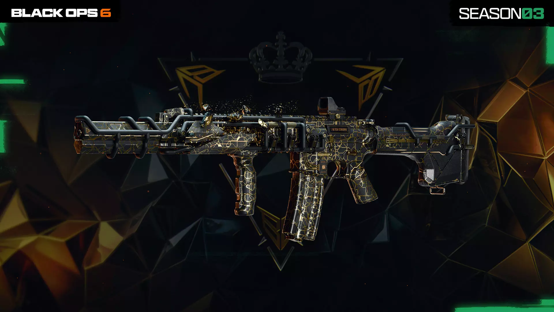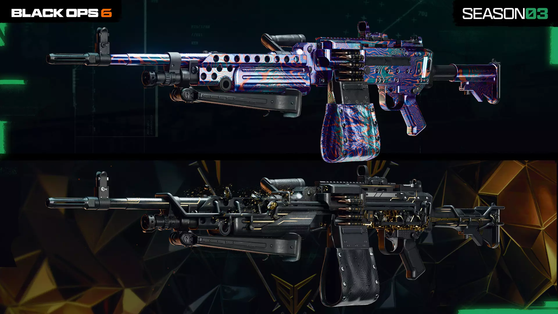 (上文)“坚固耐用”察尔科夫7.62精确射手步枪,第7页 “分割”LR 7.62狙击步枪,第8页 接下来,我们来看看与动态黑色行动细胞变体搭配的武器蓝图,其中一些具有分形金色曳光弹和分形金色击杀特效。