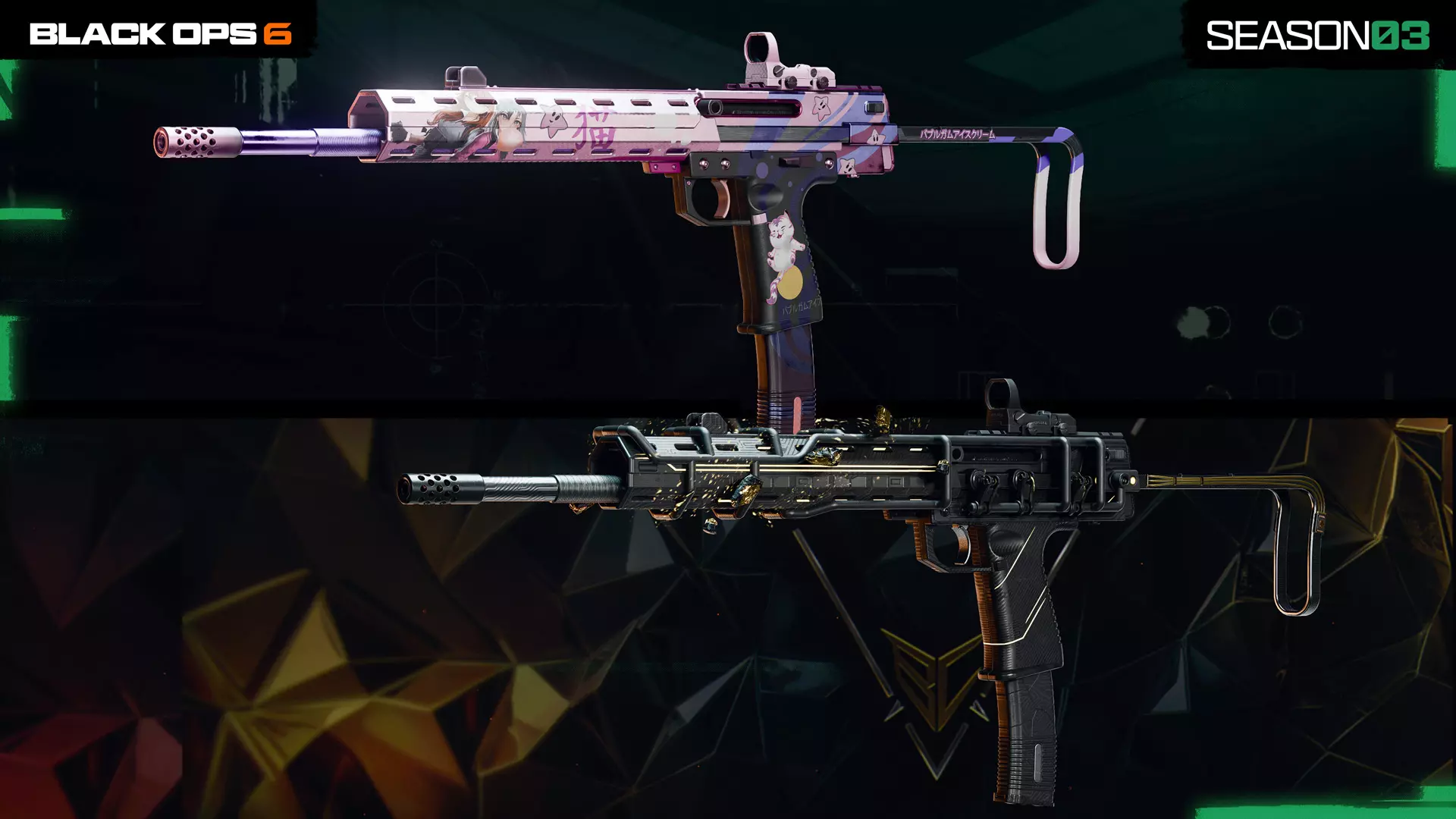 完成所有战斗通行证页面即可解锁最终的完成页面,其中包含以下精彩内容: 200点使命召唤点数 “Jug-o-Not”干员皮肤,BlackCell所有者可获得“Jug-o-Not BlackCell”变体 “Verderous Menace”动态武器蓝图,BlackCell所有者可获得“Verderous Menace BlackCell”变体 “Agent Ready”动态徽章 “Poison Tilt”动态名片 “Smoked Noggin”武器贴纸 “Bear-y Sly”武器挂饰 商店亮点:全新动态蓝图和大师级蓝图 Tracer Pack: Jay and Silent Bob
