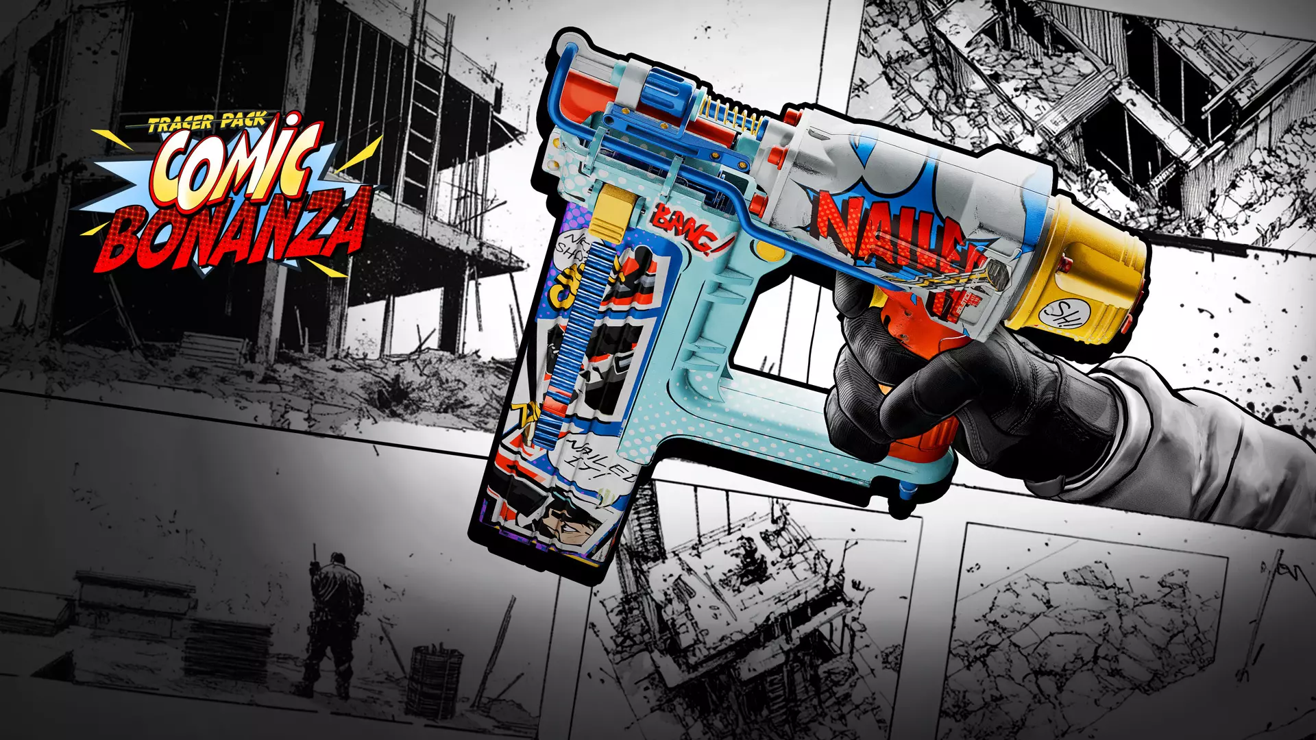 用这款漫画风格捆绑包填补剧情漏洞,打造属于你自己的英雄故事。该捆绑包包含三款漫画风格武器蓝图:新特殊武器钉枪的【Retcon】蓝图、AK-74突击步枪的【Single Issue】蓝图,以及近战武器砍刀的【Comic Cutout】蓝图。这三款武器均配有漫画气泡击杀特效,钉枪和AK-74还附带红色和黄色弹道轨迹。 使用【One. Two.】终结技向敌人告别,装备【Big Boom!】武器挂饰、【Panel Pop】喷漆和【Stand Heroically】徽章,成为漫画中的英雄。 【Tracer Pack: Shattered Veil Reactive】