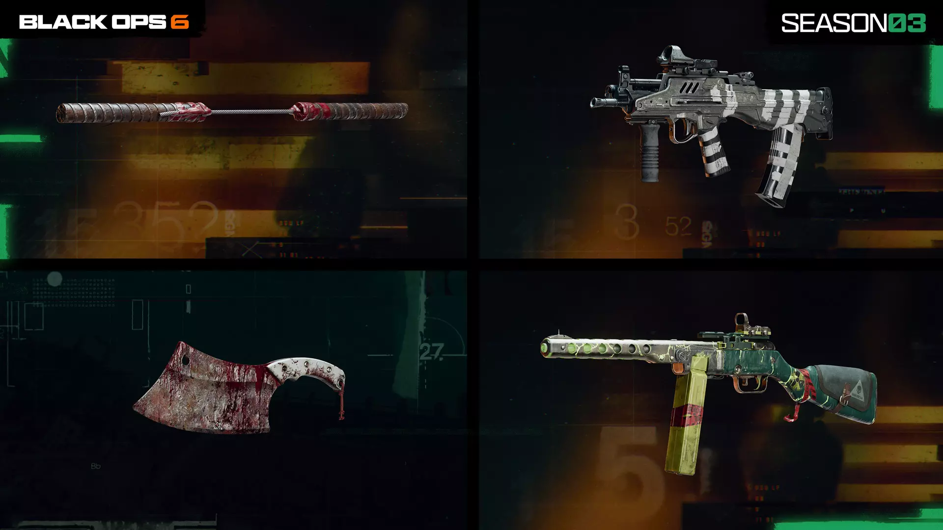 Verdansk的回归标志着几位在该地区拥有丰富经验的干员的回归。R0-Z3以其“R0-Z3”干员皮肤引领第03赛季BlackCell内容,同时还有一系列其他可解锁的BlackCell内容,包括额外的干员皮肤和带有动画碎片效果的武器蓝图。 额外的BlackCell即时奖励内容 购买BlackCell即可获得终极战斗通行证体验,能完全解锁第03赛季战斗通行证中的所有奖励。购买后可立即访问BlackCell即时奖励页面,获得以下物品: