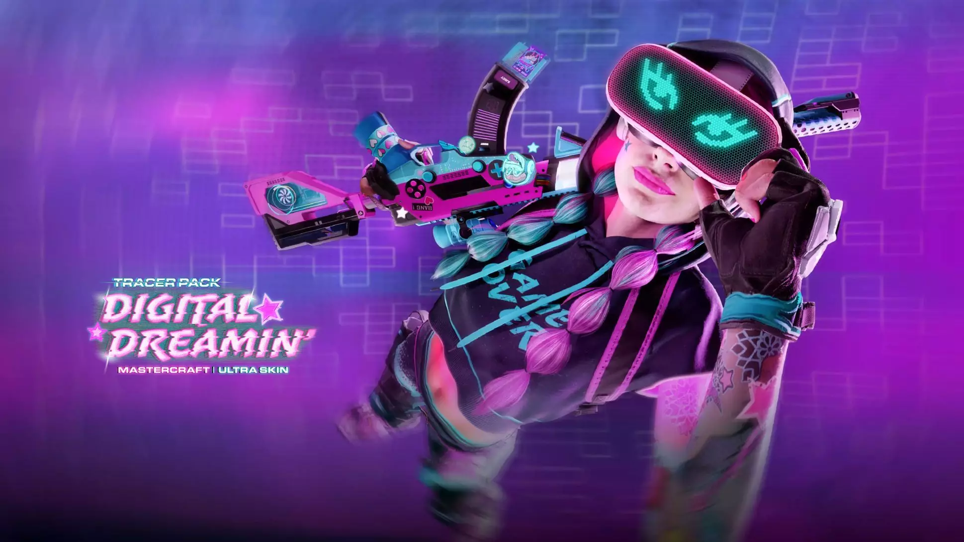 这些 blunt-tastic 英雄们以他们的漫画书化身集结。玩家可以化身为“Bluntman”或“Chronic”,并可选择三款以大麻烟为主题的武器蓝图:“Bluntman Stuntman” Krig C 突击步枪、带有粉紫曳光弹和大麻叶击杀特效的“Chronic Unapologetic” Jackal PDW 冲锋枪,以及带有大麻叶击杀特效的“Bong Staff” 长棍。 来自 Bluntcave 武器库的“Smoke You Out”终结技助你击败对手,还有“Did that Happen?”表情动作、动态“Joint Power”名片、动态“Blunts Out, Suit Up”徽章以及“Doobage Duo”喷漆,彰显你对大麻烟的喜爱。 Tracer Pack: Digital Dreamin’ 反应式杰作级终极皮肤