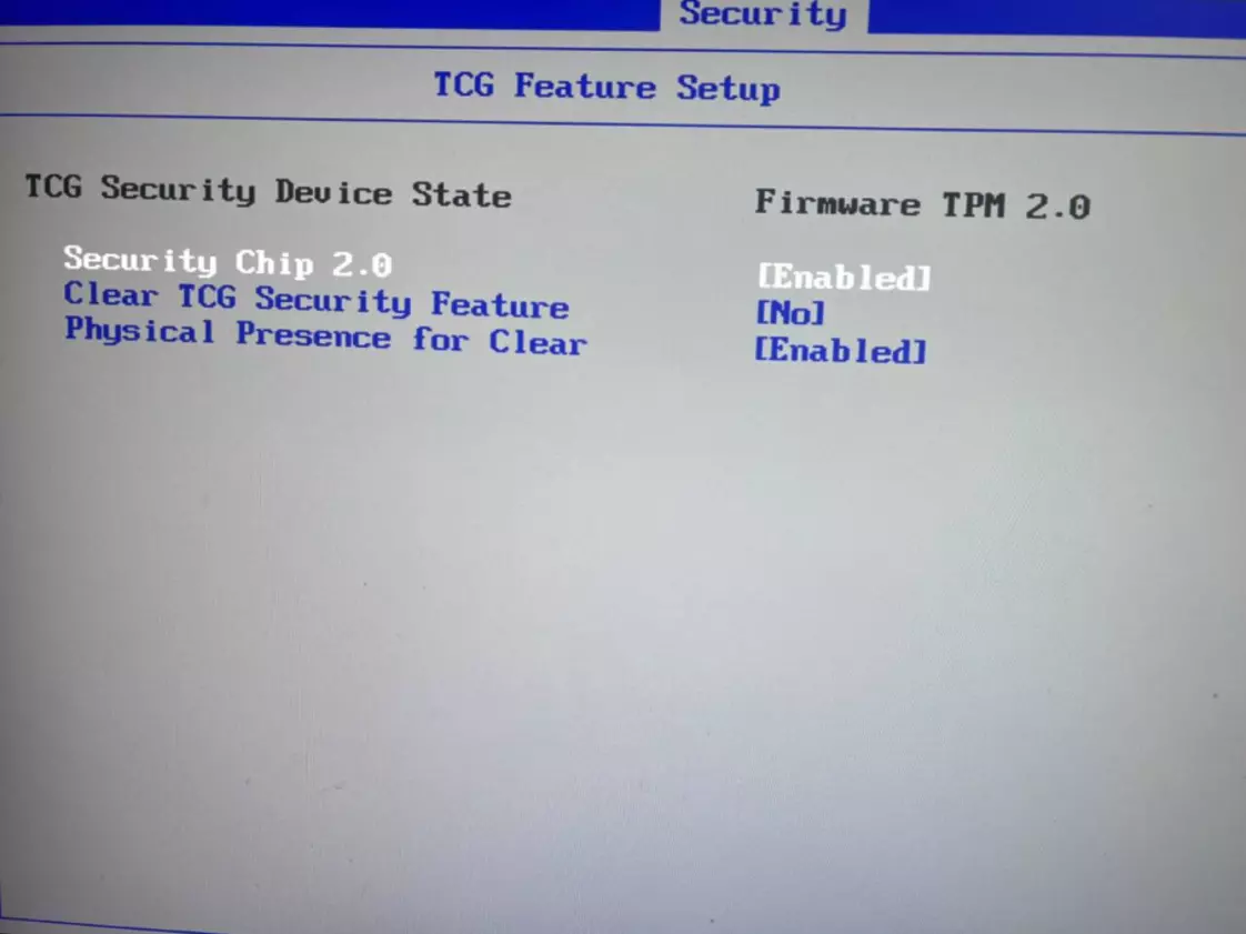 2. TPM:选择“启用”。如果您的设备允许选择TPM版本,请选择“2.0”。
