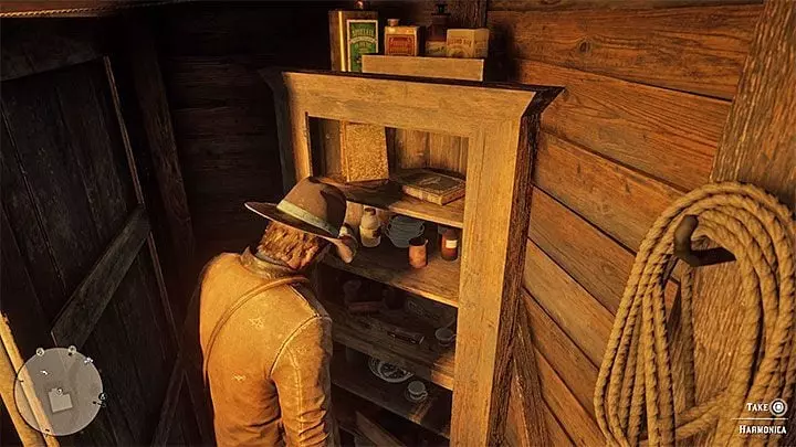 赛迪让亚瑟去寻找一个名为【口琴】的独特物品。前往埃米特·格兰杰的农场,这个地方靠近弗拉特内克车站(瓦伦丁南部)。你在【高尚之人,卑劣之徒】支线任务中曾到访过这里。进入主建筑,口琴就在其中一个架子上。找到后,赛迪会给你一份【枪油】。