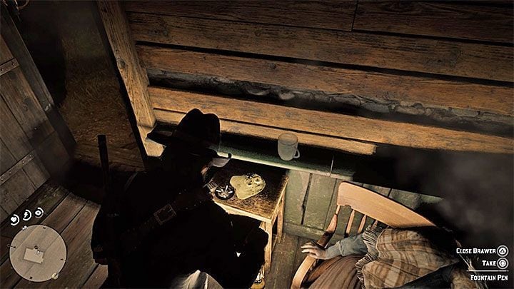 玛丽-贝思让亚瑟去取一件名为【 fountain pen 】的独特物品。前往小木屋(该木屋位于翡翠牧场以东)。检查女人尸体旁的床头柜抽屉。钢笔就在抽屉里。玛丽-贝思会给你一枚戒指。