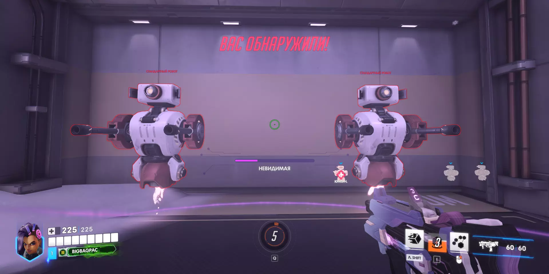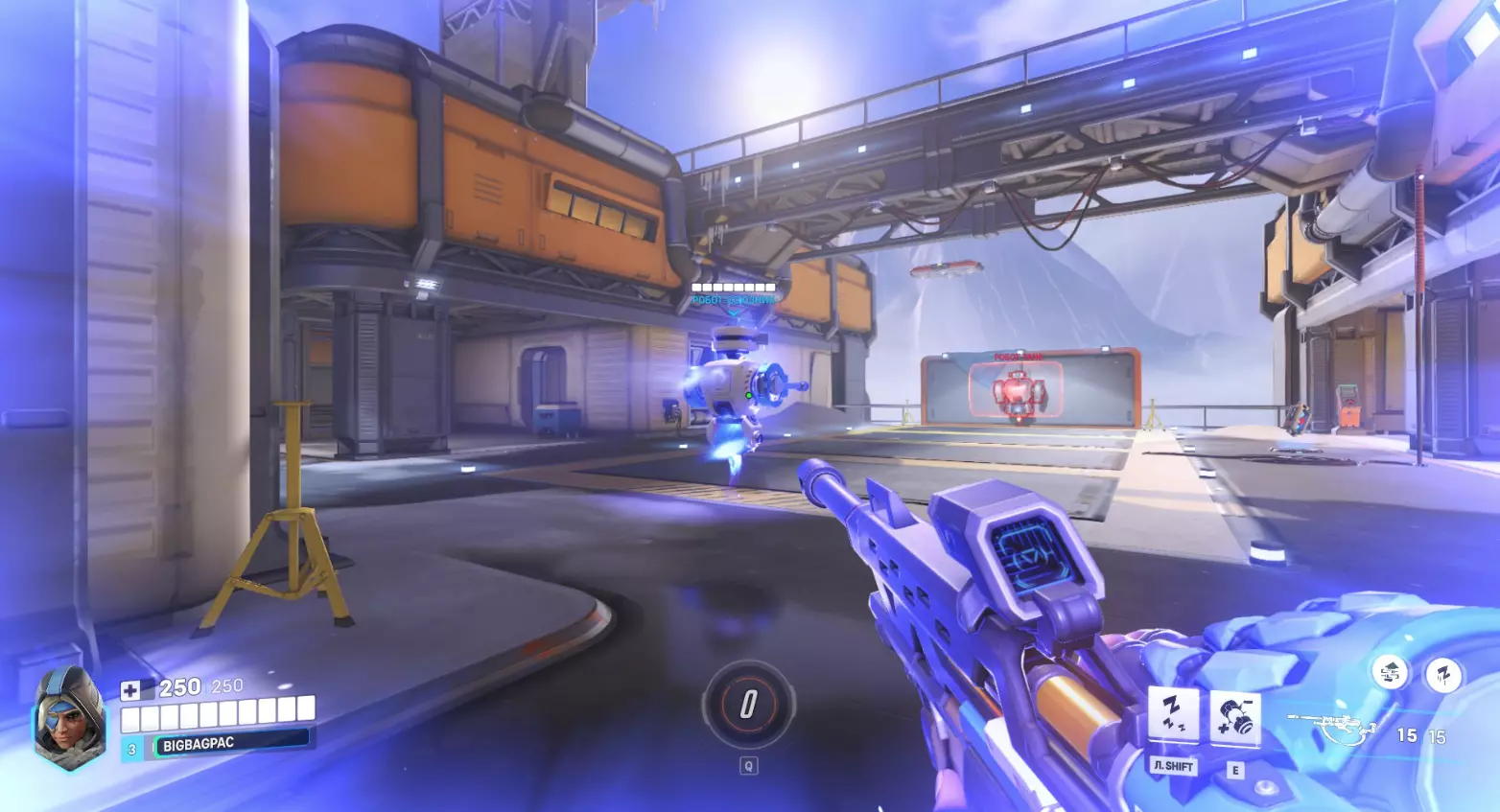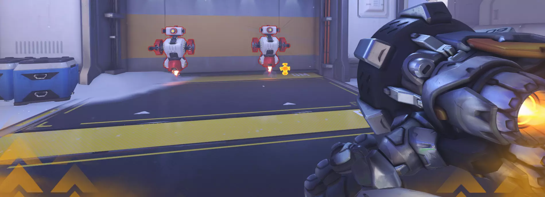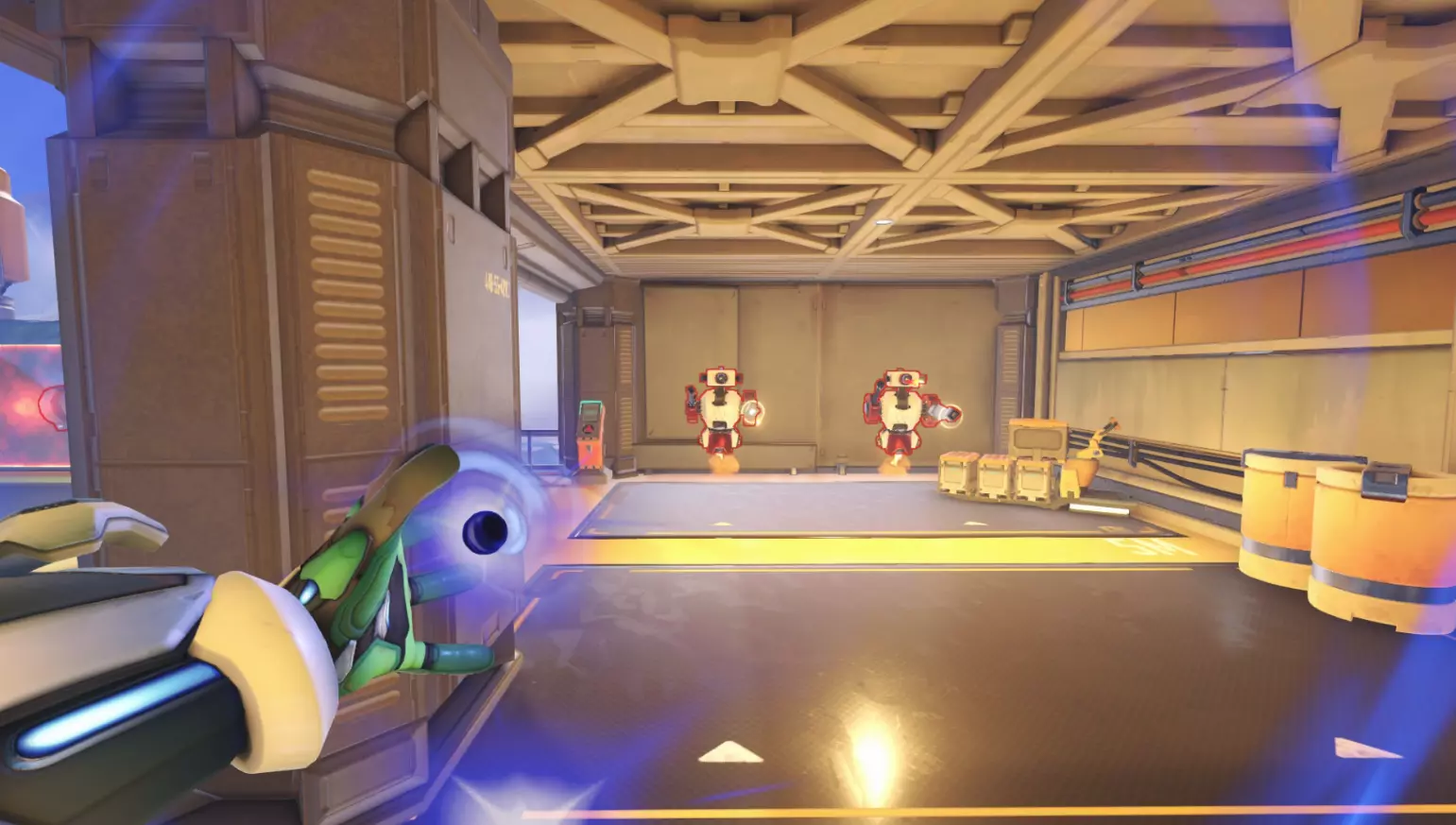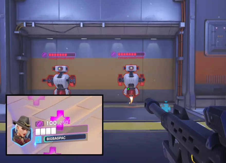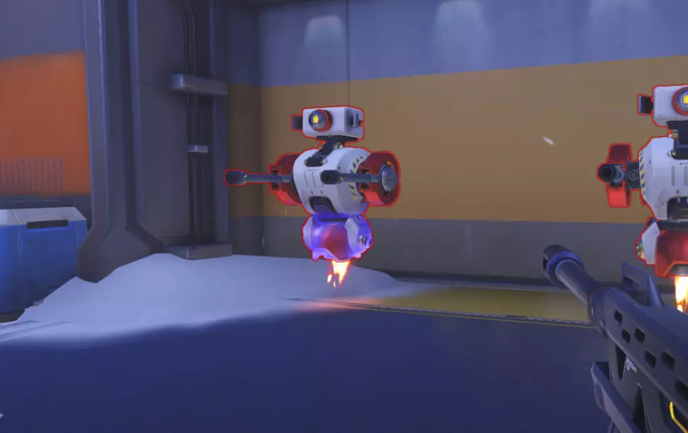 此外,两个机器人的作用是检验英雄在近距离的作战效率,例如使用霰弹枪或攻击距离有限的英雄。