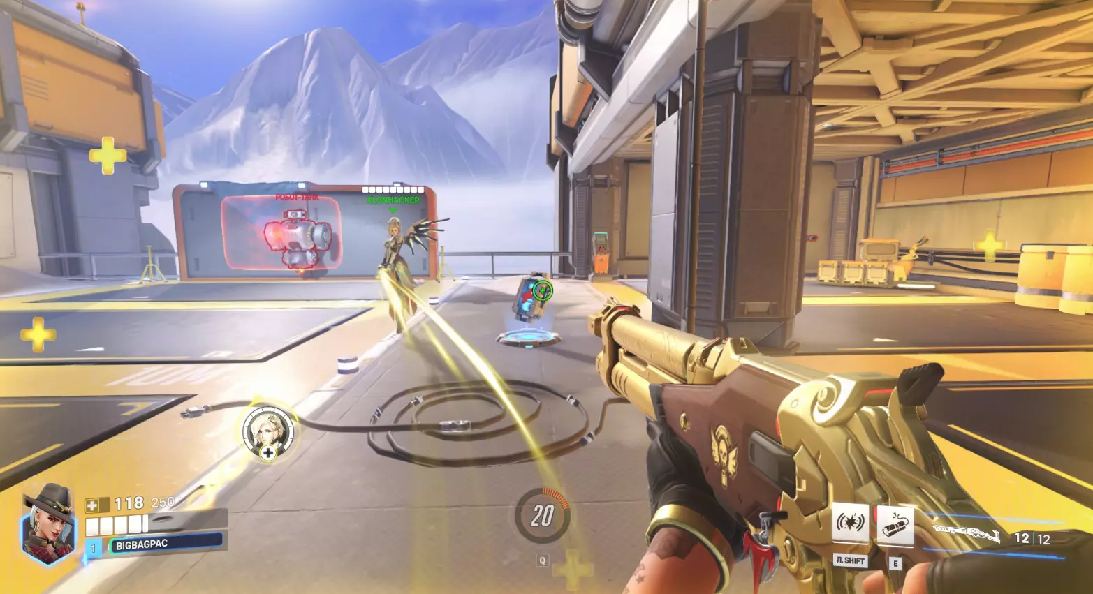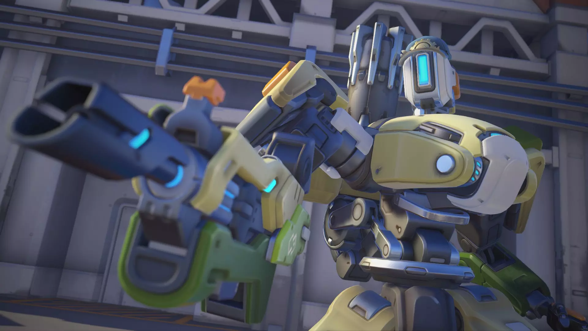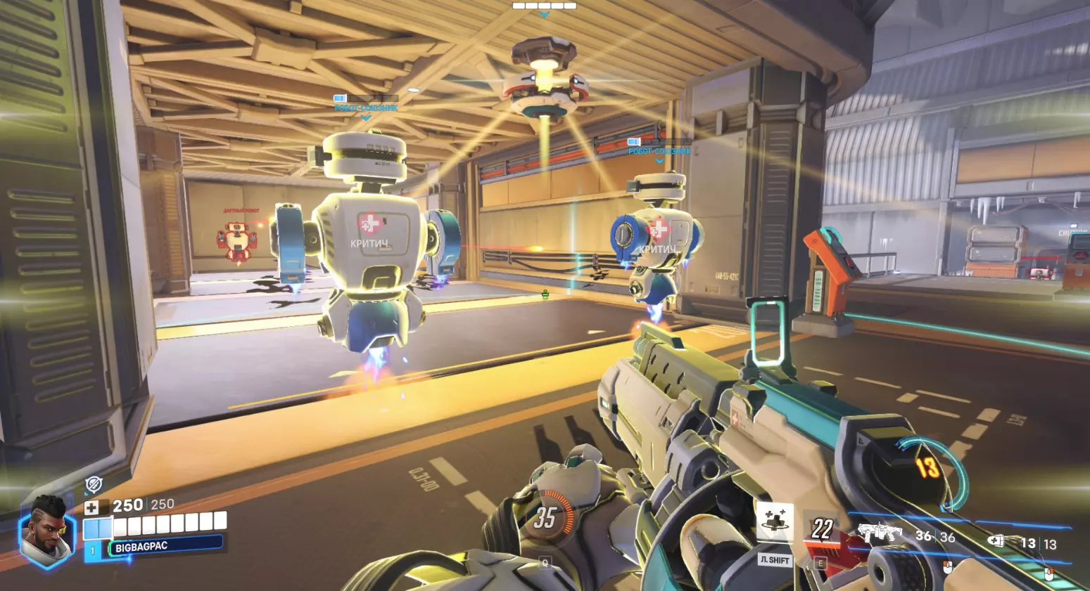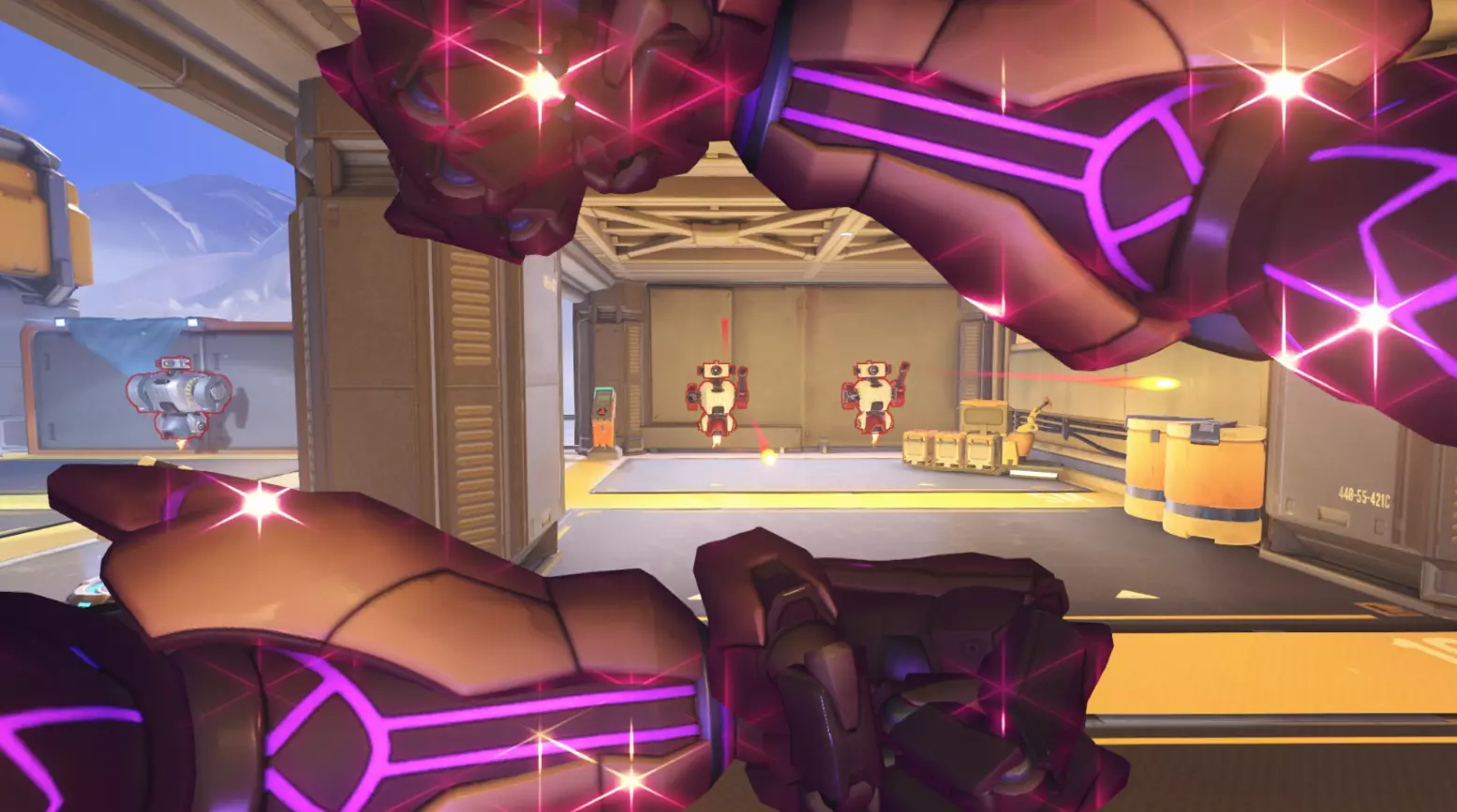 此外,两个机器人的作用是检验英雄在近距离的作战效率,例如使用霰弹枪或攻击距离有限的英雄。