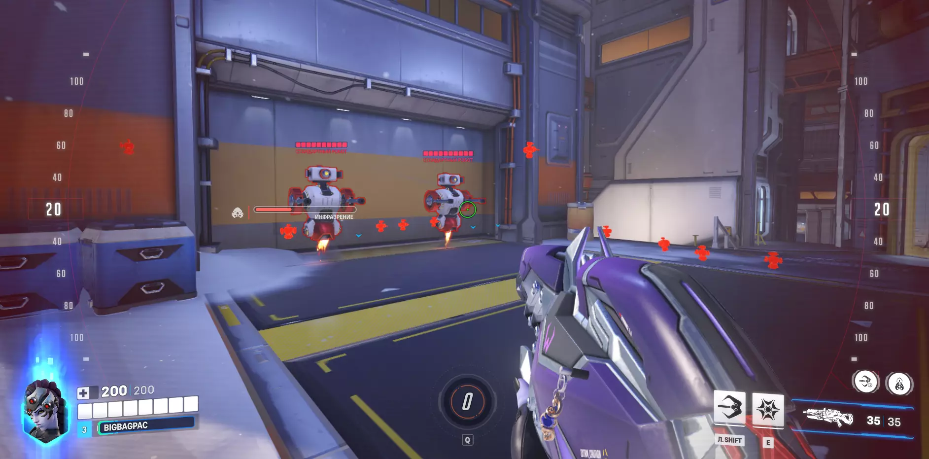 狙击机器人 最初这个机器人处于非激活状态,但你可以随时将其开启或关闭。它可能有什么用途呢?说实话我也不知道,或许是用来测试英雄的闪避能力吧。真的,我也不清楚。