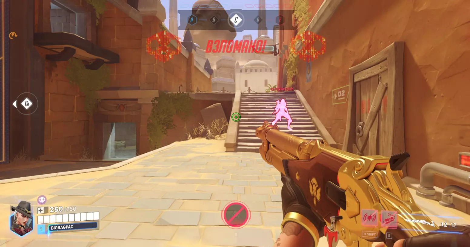 弹药可分为以下几种类型,这些类型可能单独存在,也可能同时具备多种特性: - 弹跳型:能够从墙壁上反弹。 - 穿透型:可以穿过角色和障碍物。 - 爆炸型:能在爆炸位置造成范围伤害。直接命中时造成最大伤害,无暴击伤害。(图片示例) 此外,爆炸可能会伤害到此类弹药的持有者(除了【 Крысавчика 】,因其被动技能不会受到自身爆炸的伤害)。 粘性弹药:可以粘在敌方英雄身上,可通过特殊效果解除。 失高弹药:会随时间逐渐降低高度,需要比平时瞄准得稍高一些。光束(Beam)的特点是射程有限、持续造成伤害且完全没有暴击伤害。如果光束击中敌人,准星中心会出现一个蓝点。此外,还可以区分出以下几种不同类型的光束: