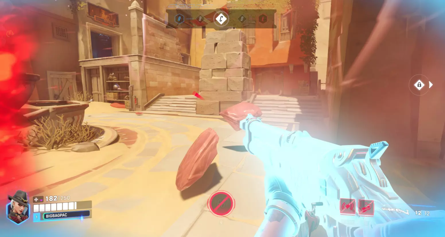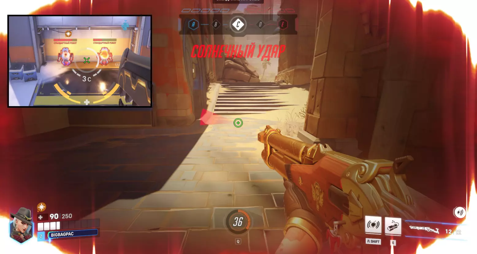 要害或头部——如果命中头部,会在普通伤害基础上造成额外伤害,这就是暴击伤害。命中时准星中央会显示红色条。但每个英雄都有各自的暴击倍率,有些英雄甚至完全无法造成暴击伤害。 这种伤害类型的击杀显示与普通击杀相同,但会带有红色准星标记。