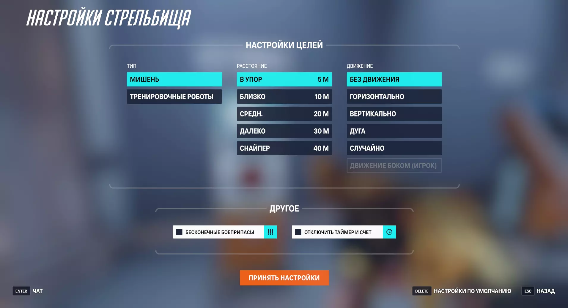 这是靶场里最好的设施。这里几乎是提升射击技能的理想场所。你可以在这里选择英雄,设置靶子类型、靶子是否移动,当然还有射击距离,以及其他一些细节。基本上你自己就能弄明白各项设置的作用。