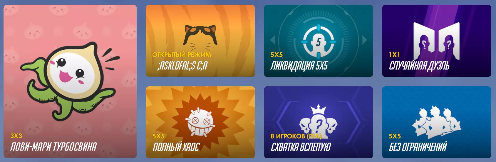 街机模式——包含多种不同游戏模式和规则的混合体,这些模式和规则在快速对战和竞技对战中均不存在。模式每个赛季都会更换,部分模式甚至每天都会变化。存在活动或赛季的主要模式,其中之一是占点模式,但该模式的位置可能会被其他模式取代。