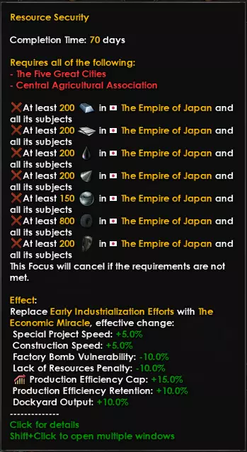 在该分支的最后一个重点【资源安全】中,你将把早期工业化努力转变为【经济奇迹】——但这需要满足严苛的要求: