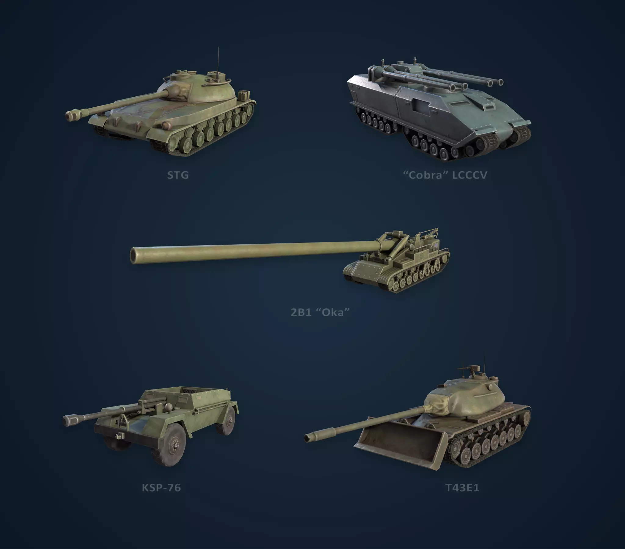 * 我想要一辆配备巨炮的坦克。我说的是那种超大号的炮!2B1“奥卡”自行火炮,简直完美。 * “眼镜蛇”轻型越野战斗车辆(名字真够长的),这款车有多种设计,配备不同类型的武器。这是我们绘制的搭载四门大口径火炮的版本!
