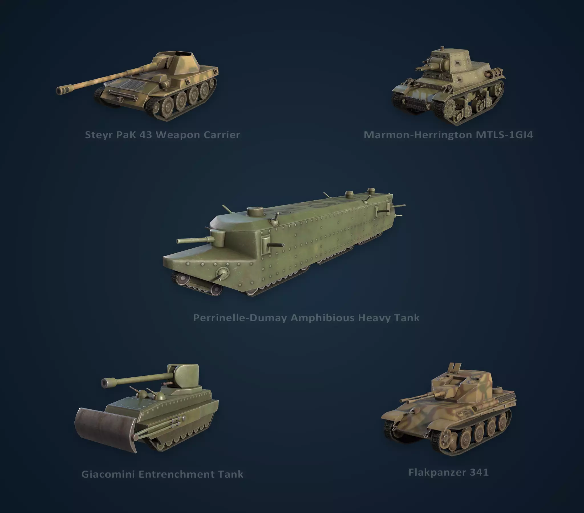 将军们! 我们有个好消息!原型载具已基本准备就绪,因此我们将不再按最初计划于第三季度发布,而是提前至第二季度推出!没错,原型载具包即将上线,下方为您带来一些重要细节。但首先,请注意以下事项: 当我们最新的DLC推出时,扩展通行证1将成为动态捆绑包。这意味着对于您已拥有的扩展通行证中的任何DLC,您将获得折扣。这对尚未购买的玩家来说是个好消息!但这也意味着预购奖励将不再包含在捆绑包中,所以请及时做出选择。 现在,来看看重点内容: 各位将军好! 我是Slurpen,再次为大家介绍《钢铁雄心4》的3D美术相关内容。这次,我还邀请了莫德雷德·维京(又名加雷思),他是《钢铁雄心4》的一名内容设计师。我们将带大家深入了解原型载具单位包中的新载具,同时分享一些有趣的小知识! 这些载具诞生于军备竞赛白热化的年代,任何能够获得对敌优势的手段本身就是一场较量。许多载具的设计是为了改进现有概念,另一些则旨在开辟新领域,还有一些纯粹是在绝境中诞生的产物。其中一些原型从未被建造或完全开发,另一些则投入了战场,甚至在不同程度上取得了成功! 在某些情况下,我们永远无法知道最终设计会是什么样子。不过,这可是我最喜欢的部分!我们参考了原始设计蓝图,为你绘制出这些载具若完全生产出来可能会有的样子。希望你欣赏这些设计时能和我们创作它们时一样开心! 这些载具是很有趣的讨论话题。我已经附上了每款载具的名称,你可以随意查阅它们各自的历史。我们自己做这件事的时候也乐在其中! 接下来,我和莫德雷德·维京会对各自的最爱做简要点评! 以下是这些载具的高清特写: