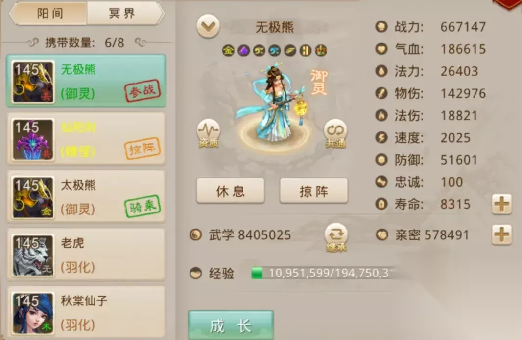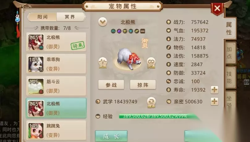来自【惊天动地】区组的小志*, 拥有全服气血最高的北极熊, 气血高达305240! 而来自【4周年】区组的゛千羽*, 拥有全服速度最快的北极熊, 速度高达7300! 比全服最快7141速度的太极熊, 还要略胜一筹~ 全服物伤、战力最高的为太极熊 随着阶位的提高, 8阶太极熊的身价水涨船高, 但其实力毋庸置疑!