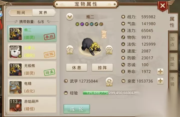 2016年12月1日开启的第1个年度版本, 隆重推出了坐骑系统! 从此我们寻仙问道的路途中, 又多了1位忠实的伙伴——骑宠。 熊坐骑, 因可爱又不失霸气的外表, 深受道友们的喜爱~ 你与它们的回忆都有哪些呢? 如此受欢迎的熊坐骑中,究竟哪种熊才是“熊坐骑家族”中各项属性的佼佼者呢?一起往下看看吧~ 熊坐骑全服之最 全服法伤最高的为无极熊 作为人气最高的5速坐骑, 无极熊完美诠释了, “能得到才是最好的”这句话, 谁敢说5阶骑宠就不厉害了?
