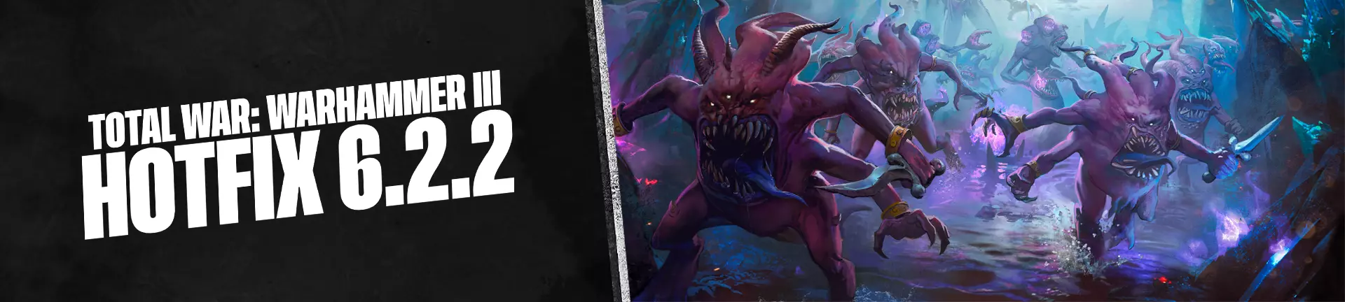 《全面战争:战锤3》6.2版本更新内容 1. 召唤单位(召唤蜥人祭司、克雷尔、召唤色孽亲王)通过效果获得的技能现已正确启用。 2. 增加色孽 steeds(色孽追寻者、色孽寻心者、色孽地狱骑士、色孽地狱骑士(地狱灾鞭))的半径比例,通过减少同时进行近战的单位数量来略微降低其性能。 3. 停止授予狙击的效果同时授予狂战士的情况。 4. 以及更多内容!重要提示: 如果在下载更新后遇到任何问题,请先花时间验证游戏文件的完整性,以确保下载过程中没有出现问题。 如果问题仍然存在,请访问我们的支持网站获取更多故障排除步骤和帮助。 模组警告: 请注意,用户生成的模组可能与新的游戏更新存在兼容性问题。如果在更新后遇到性能或稳定性问题,建议禁用正在运行的任何模组。 如果遇到问题,请在我们专门的错误报告区域进行报告,以便我们的质量保证团队进行调查。 战场上见! ——全面战争团队如果您继续遇到问题,请访问我们的支持网站以获取更多故障排除步骤和帮助。有关最新消息和公告,请访问我们的官方社交渠道。
