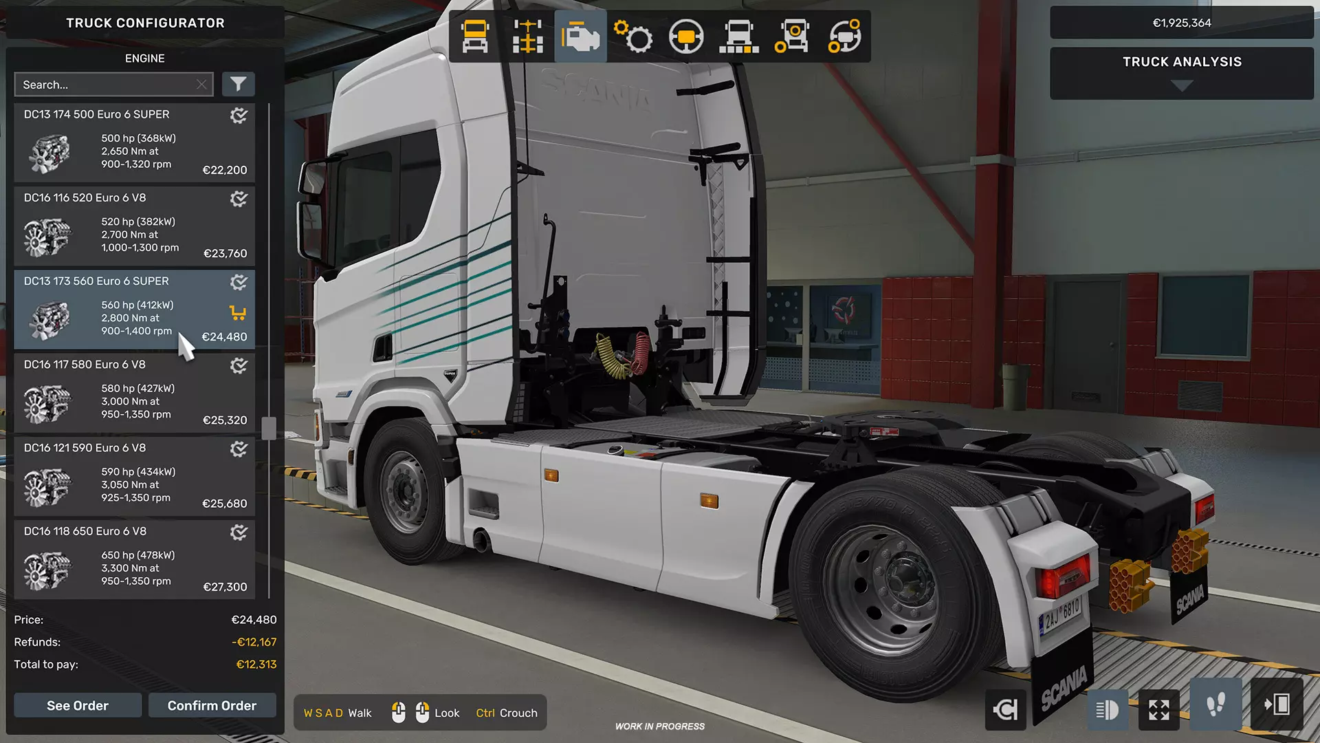 本次更新新增了多种SUPER发动机,包括420、460、500和560马力的选项。我们知道许多玩家对斯堪尼亚最新的V8发动机期待已久,很高兴地告诉大家,本次更新还将包含590、660和770马力的强劲发动机,以及新的Opticruise G25、G33、G38 CM和CMR变速箱。无论您是在高速公路上长途运输货物,还是进行更具挑战性的超大型货物运输,这些发动机都能提供出色的燃油效率和斯堪尼亚闻名的牵引动力。