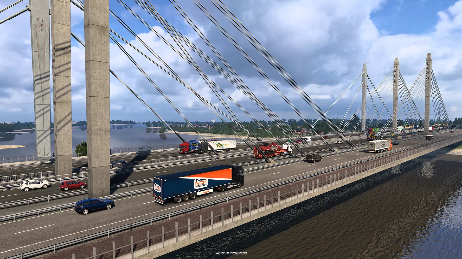 在你的卡车冒险旅程中,你可能会驶过著名的阿夫鲁戴克大堤,这座大坝将艾瑟尔湖与大海分隔开来;也可能会驶过横跨瓦尔河的桥梁,瓦尔河是莱茵河的主要支流之一。再往南来到比利时,默兹河(马斯河)流经列日等美丽城市,那里的水力发电厂利用河水来产生能源。