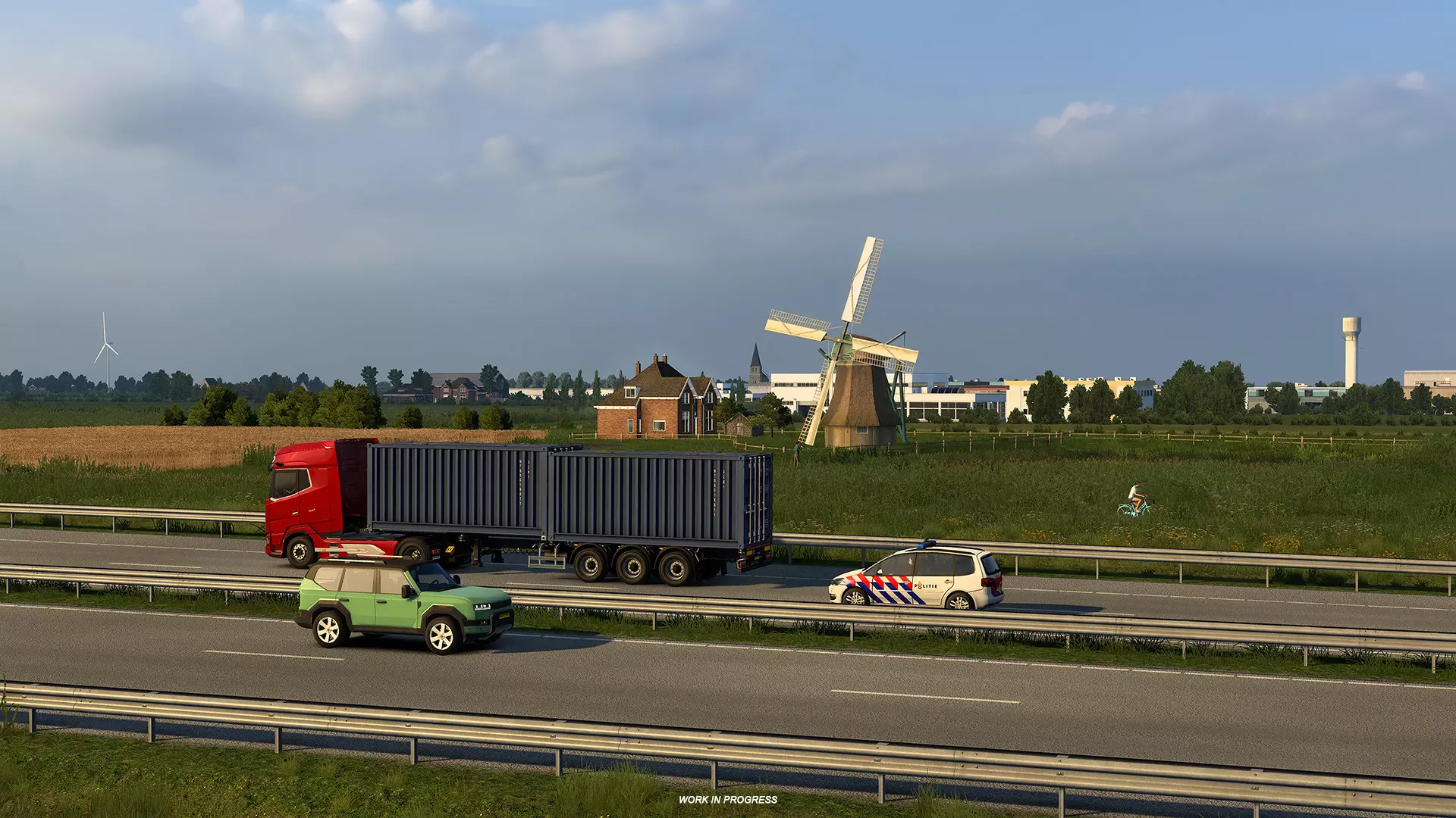 风车如今仍能在乡间看到,它们曾是排干沼泽、开垦新土地的重要工具。正如你所见,我们的地图设计师一直致力于将这一独特景观引入【欧洲卡车模拟2】。